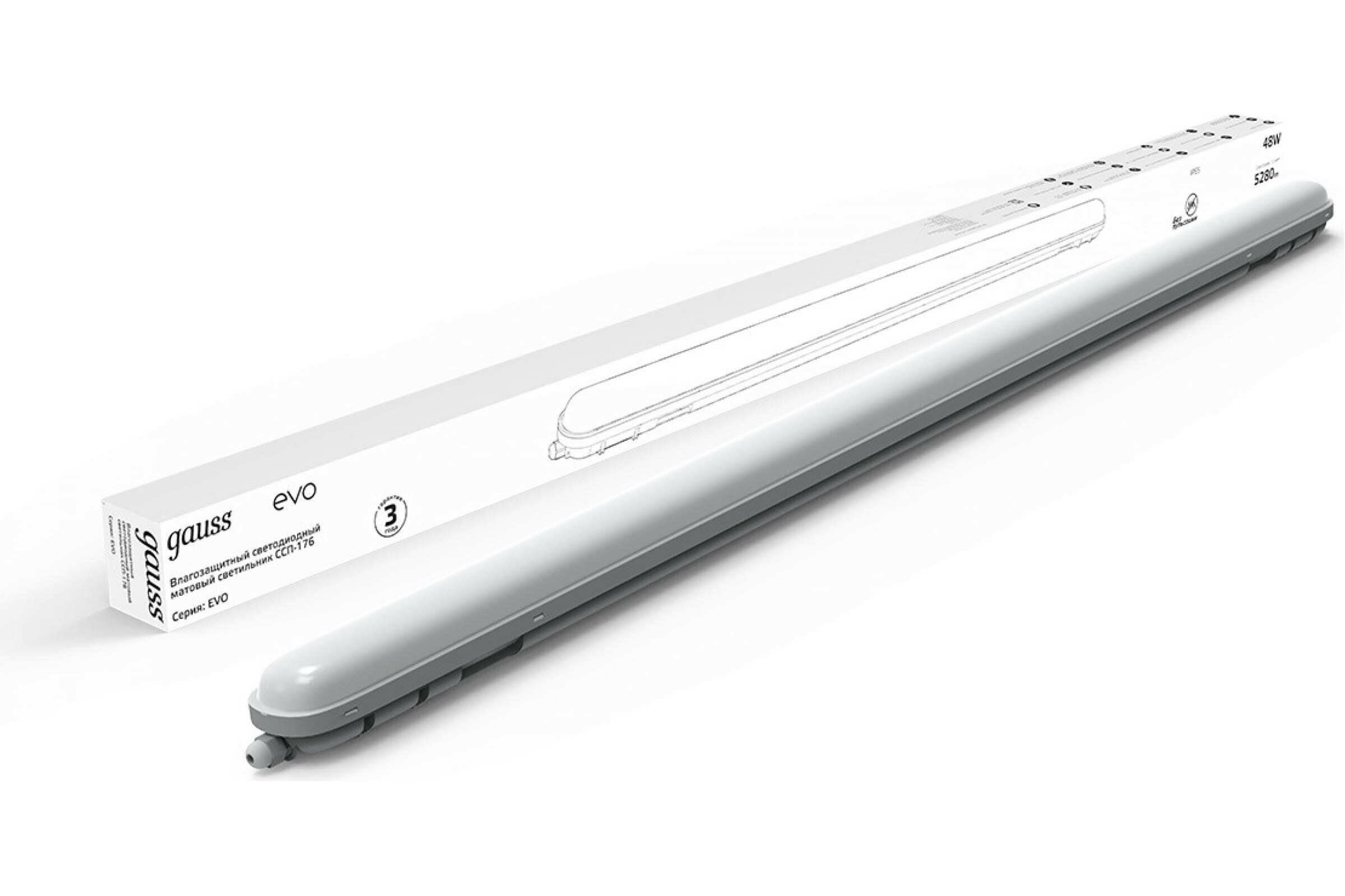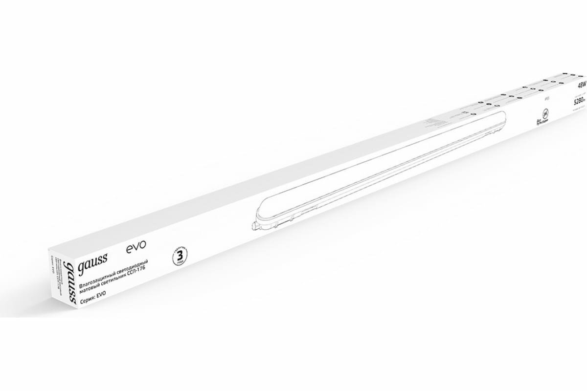 Светильник Gauss линейный LED СПП-176 EVO 48W 5280lm 6500K 200-240V IP65 1500х76х66 мм