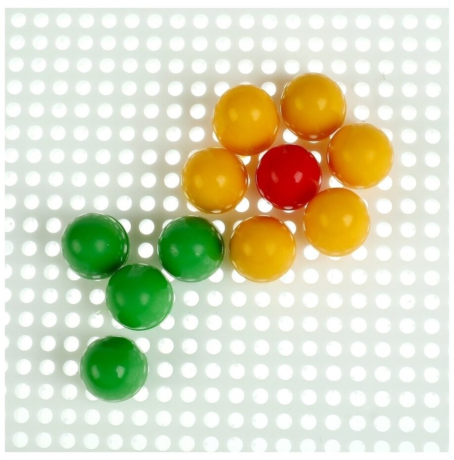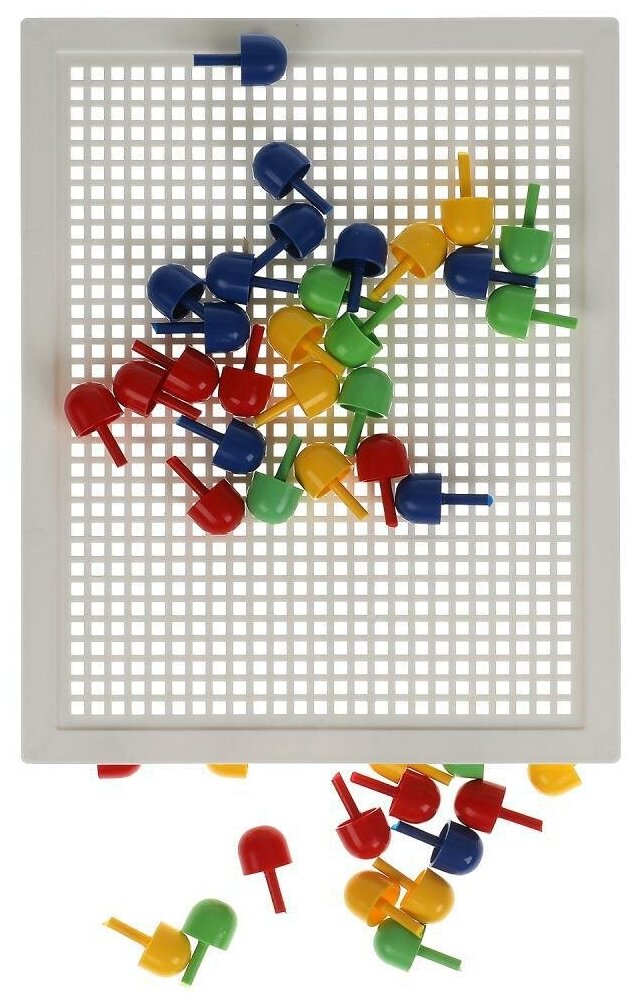 Набор состоит из прямоугольного поля-основы и разноцветных круглых пластиковых деталей, используя которые маленький любознайка сможет собрать самые разные варианты картинок.