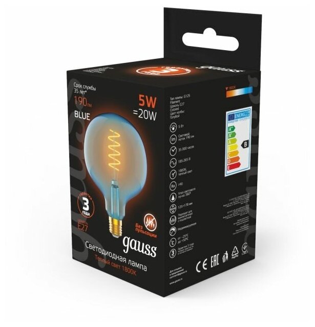 Сервис сравнения цен СкидкаГИД предлагает сравнить цены на товар «Светильник Gauss Лампа Filament LED flexible Е27 G125 5W 190lm 1800К»