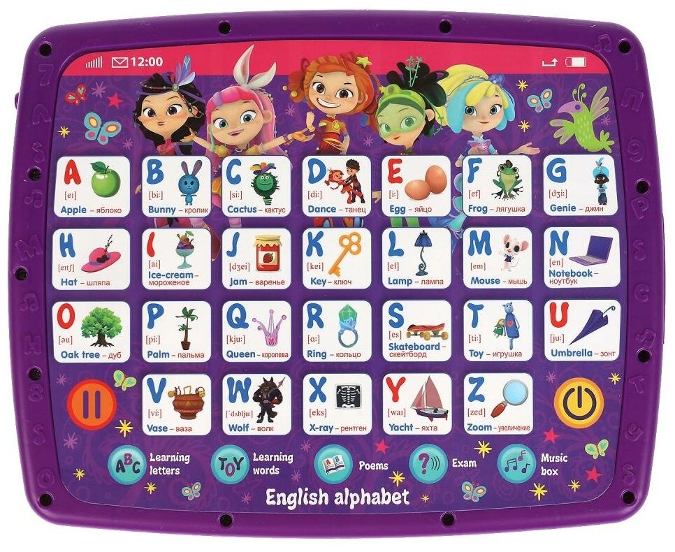 Игрушка-планшет – креативный и полезный подарок для развития и игры. Такой планшет поможет ребёнку быстро и эффективно выучить азбуку сразу на двух языках. Малыш с удовольствием будет нажимать на кнопки, слушать песни, играть и учиться.