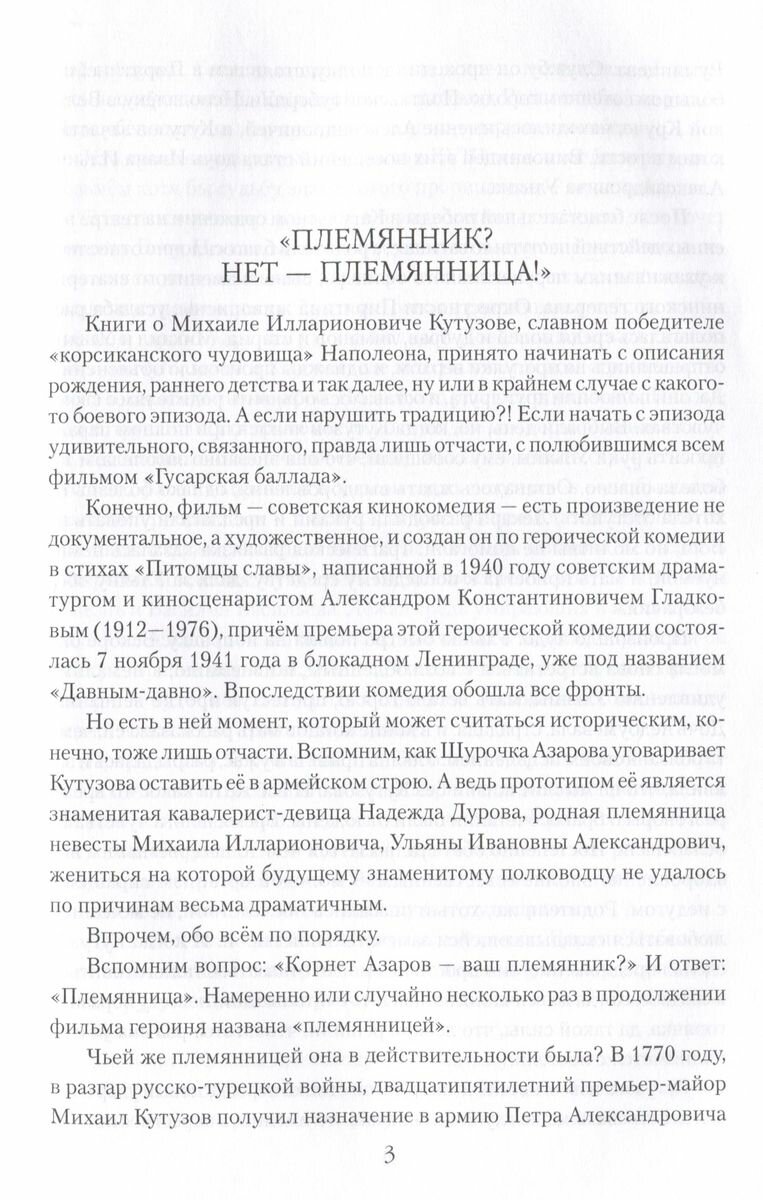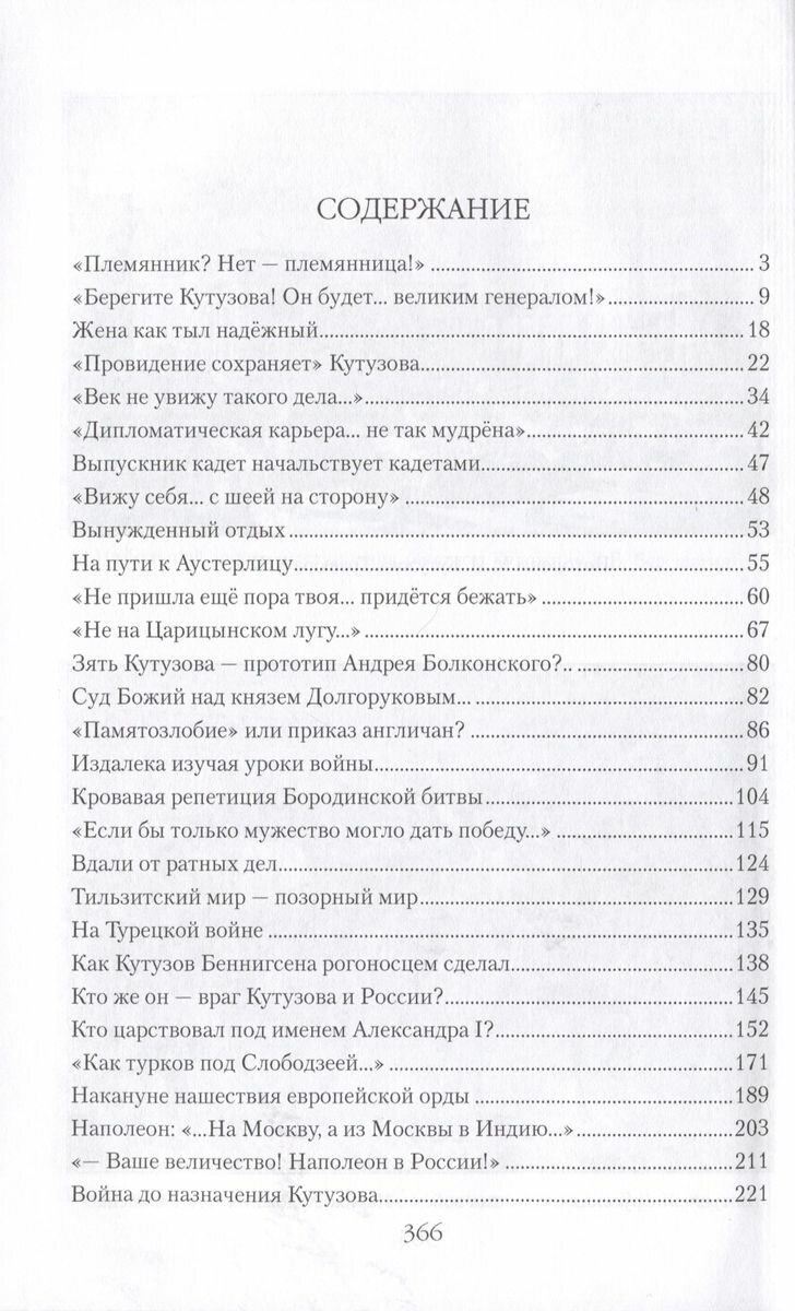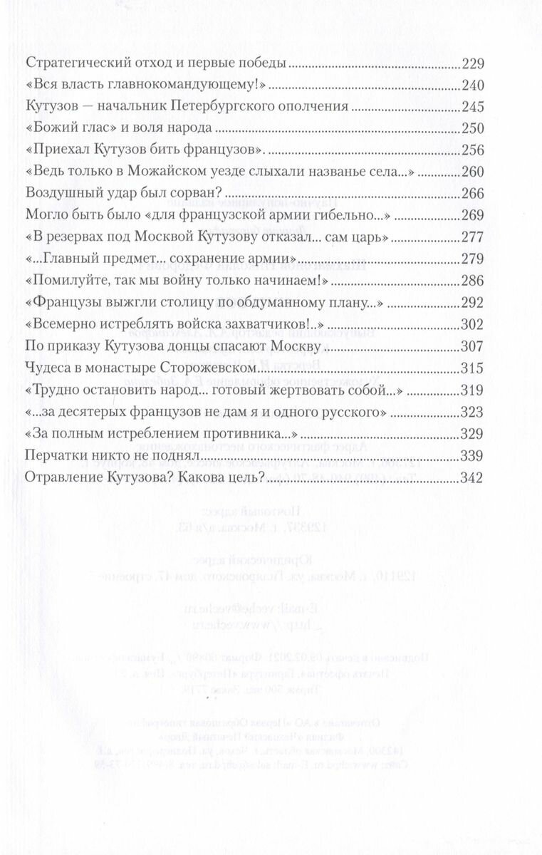 В книге рассказывается о жизни и боевой деятельности великого русского полководца М.И. Кутузова, о его трагическом романе молодости и счастливой женитьбе, о двух смертельных ранениях и чудесных исцелениях. Основное внимание уделено участию полководца в борьбе с "корсиканским чудовищем" Наполеоном и блистательной победе, одержанной над ним. Показаны причины Аустерлицкой неудачи, а также неудач в боевых действиях на полях Восточной Пруссии и Польши, раскрыты подлинные образы двух императоров - России и Франции, роль предателя Беннигсена, помешавшего разгрому французов в сражении при Прейсиш-Эйлау и в Бородинской битве, ход которой восстановлен автором на основе изучения многих намеренно забытых документов и воспоминаний участников, и, конечно, показана правда о бесчинствах французов в Москве, о спасении города от полного уничтожения. Автор размышляет над причинами, по которым Кутузов выступал против полного разгрома Франции...