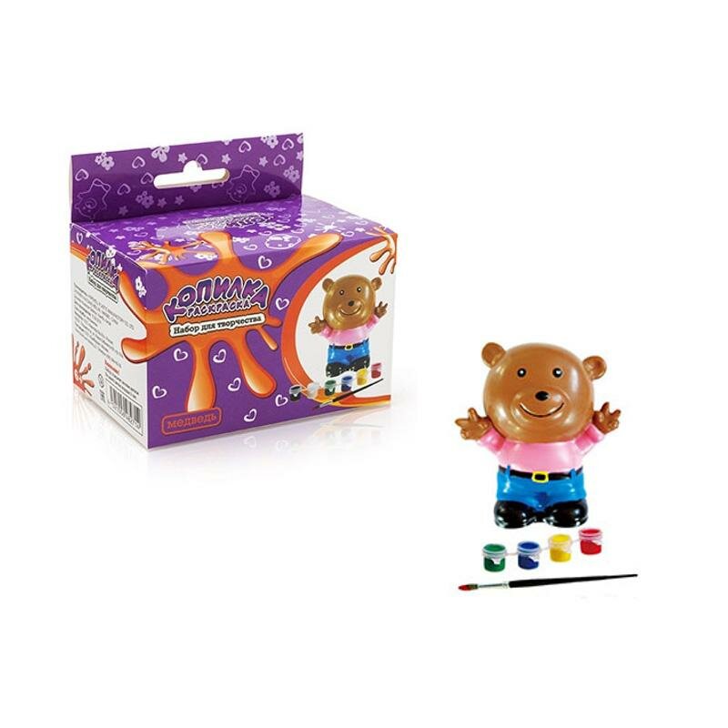 В комплекте: копилка, краски 4 цветов, кисточка.