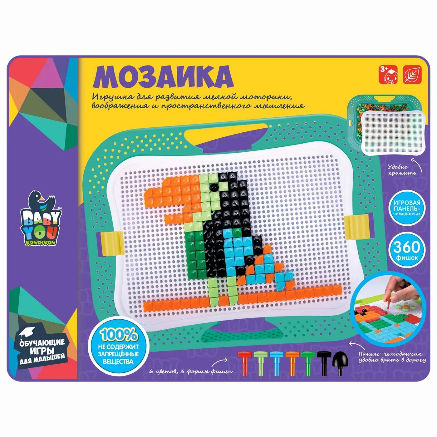 Набор «МОЗАИКА ПИКСЕЛЬНАЯ» из серии Baby You от Bondibon предназначена для развития мелкой моторики, воображения, пространственного и творческого мышления. Также мозаика помогает ребенку изучать цвета.