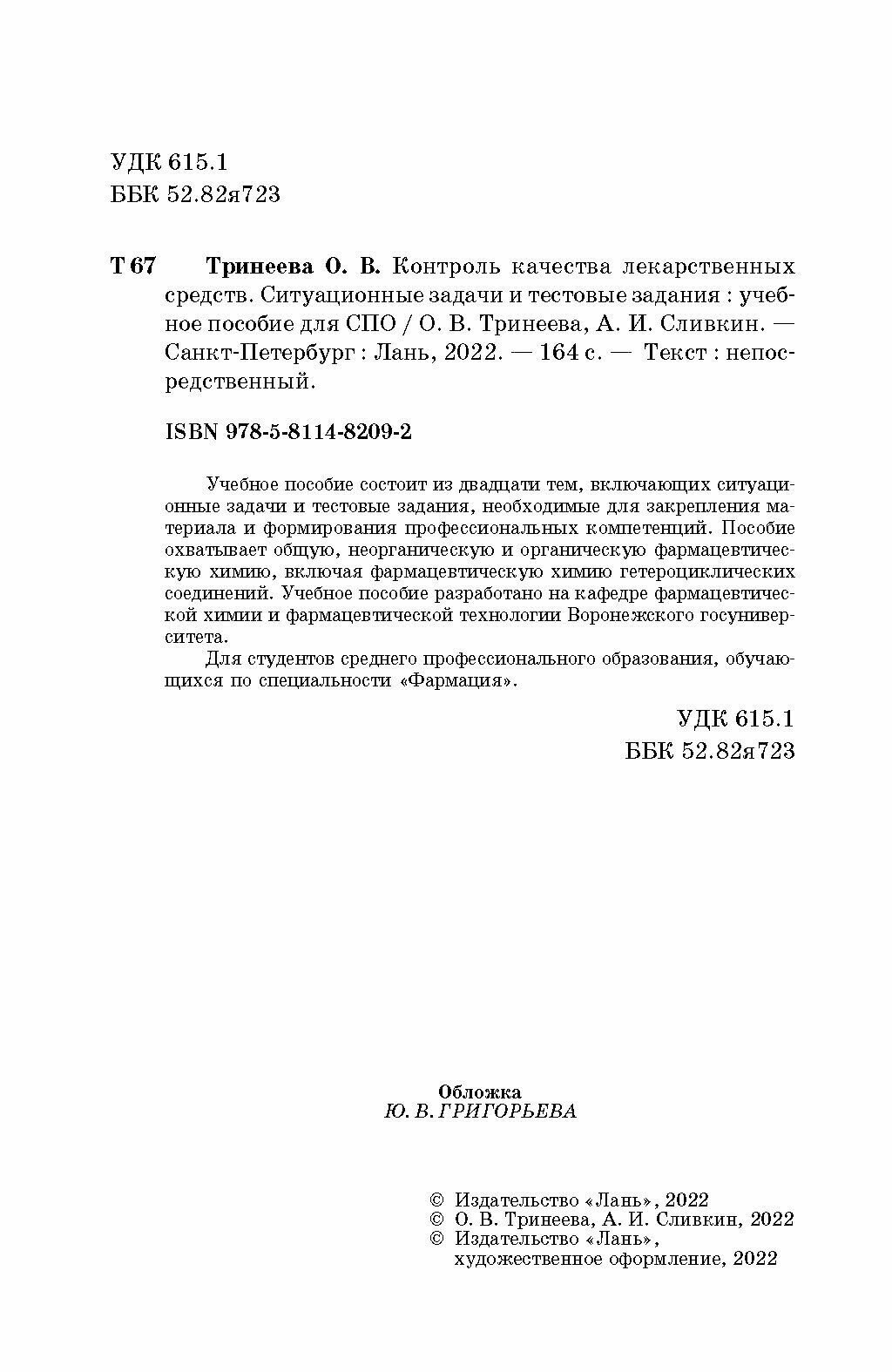 Контроль кач.лек.средств.Ситуац.зад.и тест.зад.СПО (А. И. Сливкин); Издательство ЛАНЬ, 2024