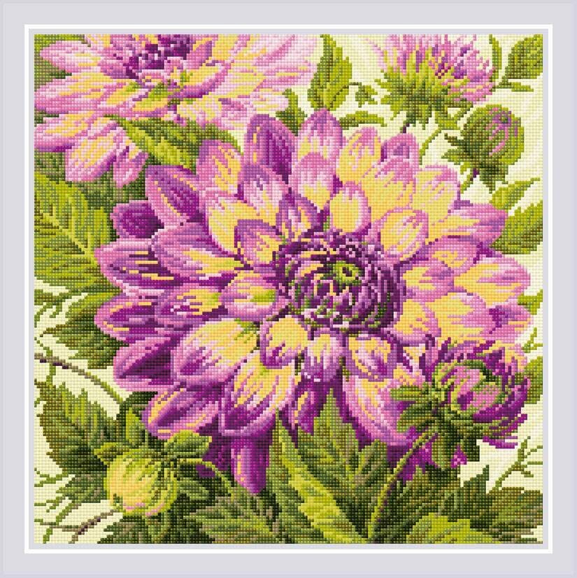 Алмазная вышивка АМ0072 Георгины Риолис (Сотвори Сама) (размер: 40х40 см)