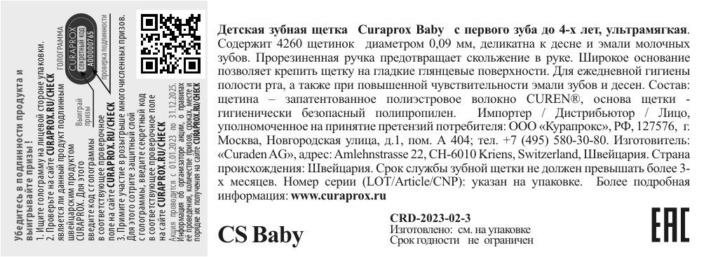 Сервис сравнения цен СкидкаГИД предлагает сравнить цены на товар «Зубная щетка для детей CURAPROX CS Baby»
