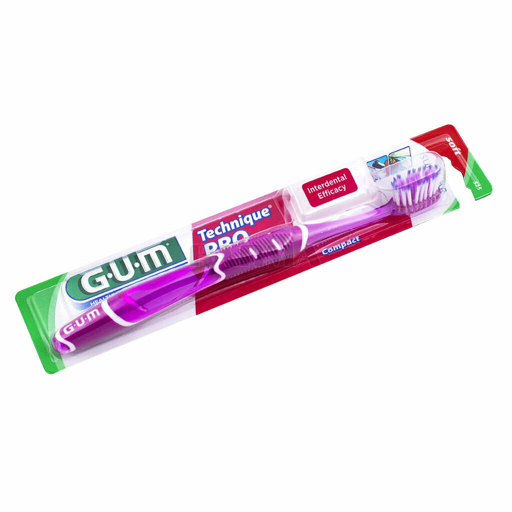 Technique PRO COMPACT SOFT – представитель лучшей серии GUM Sunstar. В процессе ее изготовления были задействованы инновационные технологии и запатентованные разработки лаборатории компании. Щетка клинически испытывалась по все заявленным характеристикам и по результатам апробации получила статус профессионального средства для ухода за полостью рта. Ее цена, качество и функциональные возможности не имеют аналогов на современном рынке.