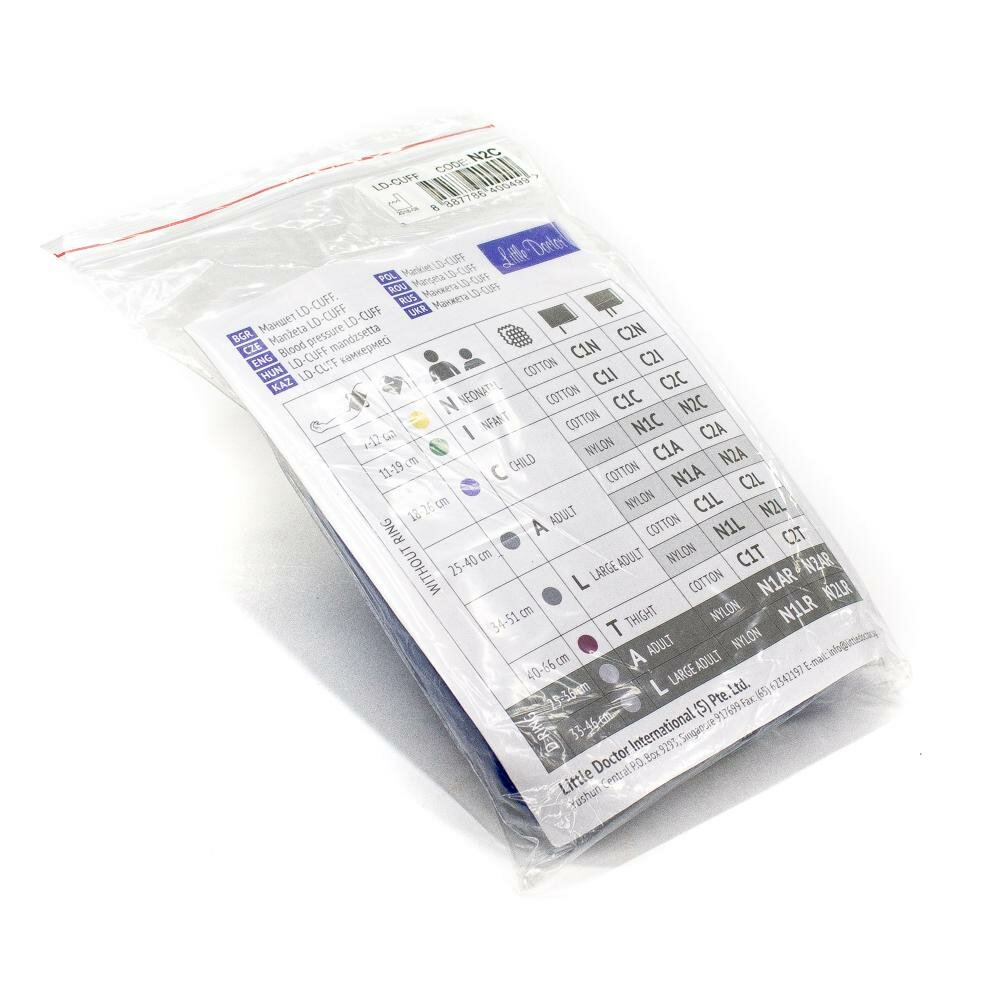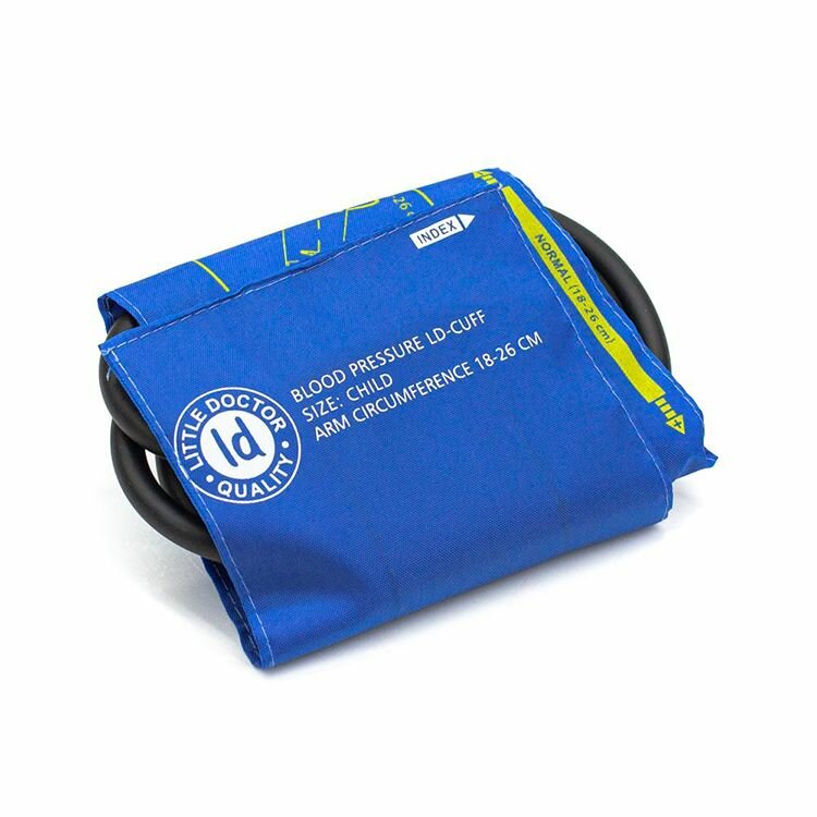 Детская манжета для тонометра LD-Cuff N2С, для обхвата плеча 18-26 см, предназначена для всех механических тонометров Little Doctor классического типа с двумя трубками – одна идет в манометр, а вторая – в грушу.