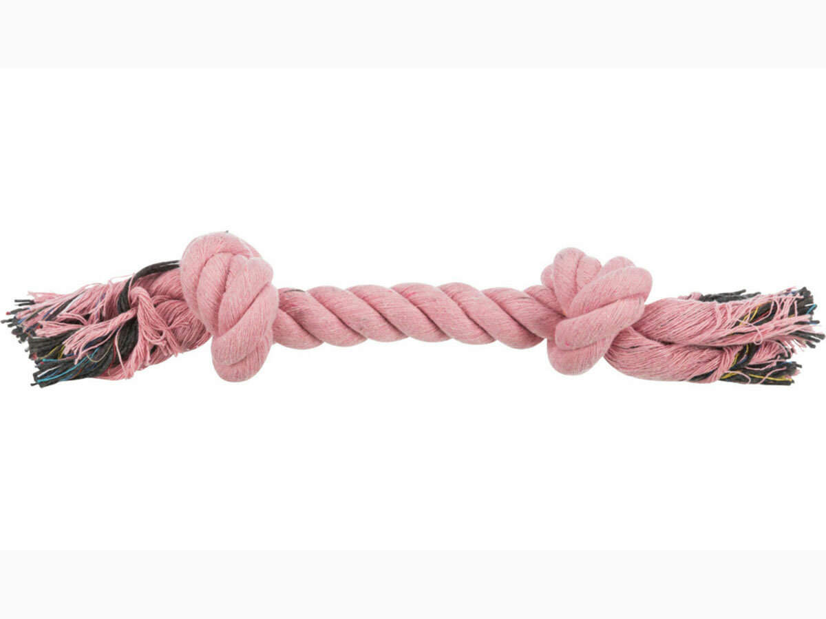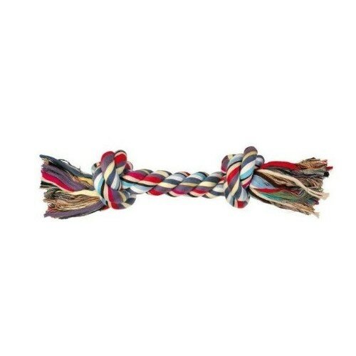 Забавная игрушка для активной маленькой собачки. Игрушка яркая и безопасная для здоровья. Выполнена она в виде крепкой веревки длиной 37 см с узлами на концах. Использовать эту игрушку можно на прогулке или дома. Игры в перетягивание очень любят практически все собаки, также как и трепать игрушки. В процессе такой игры хорошо укрепляются и быстро тренируются челюсти собаки.Игрушка для собак этой модели используется не только для развлечений, но и для проведения важных гигиенических процедур, как то чистка зубов и десен от налета и остатков пищи, которые всегда вызывают неприятные запахи из пасти. Не каждая собака спокойно перенесет эту процедуру традиционным способом с зубной щеткой, поэтому гораздо проще использовать специальные игрушки. Шершавая поверхность веревки хорошо чистит зубы и десны от налета и частичек застрявшей пищи, что является одной из основных причин появления неприятного запаха.Игрушка для собаки выполнена из веревки, сделанной из нитей натурального хлопка, которые очень плотно переплетены между собой. Именно поэтому ей не страшны крепкие острые зубы собаки. Она не сможет порвать или разгрызть ее. Использованные краски полностью безопасны для здоровья питомца.