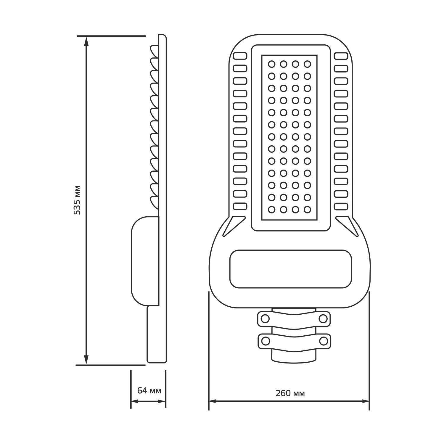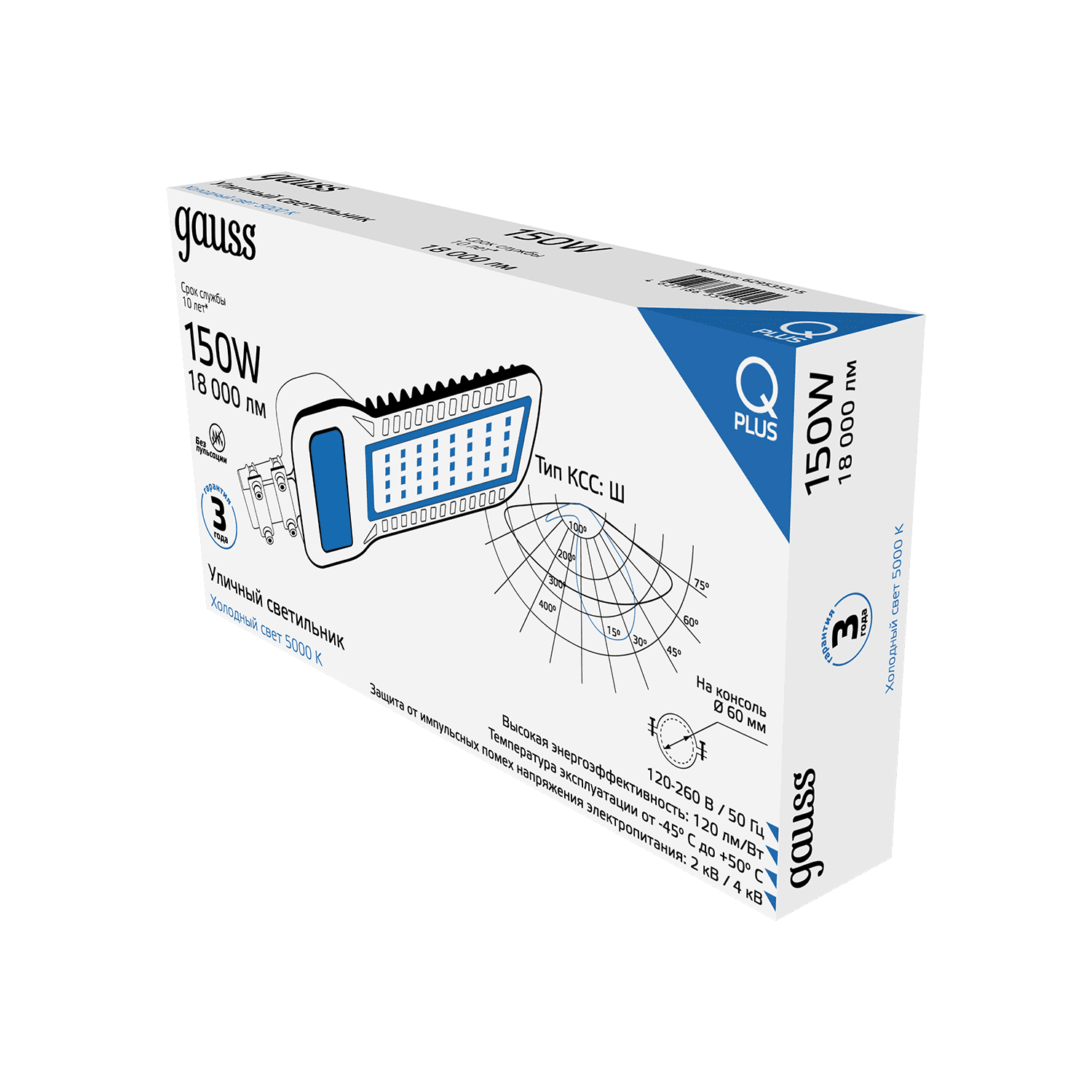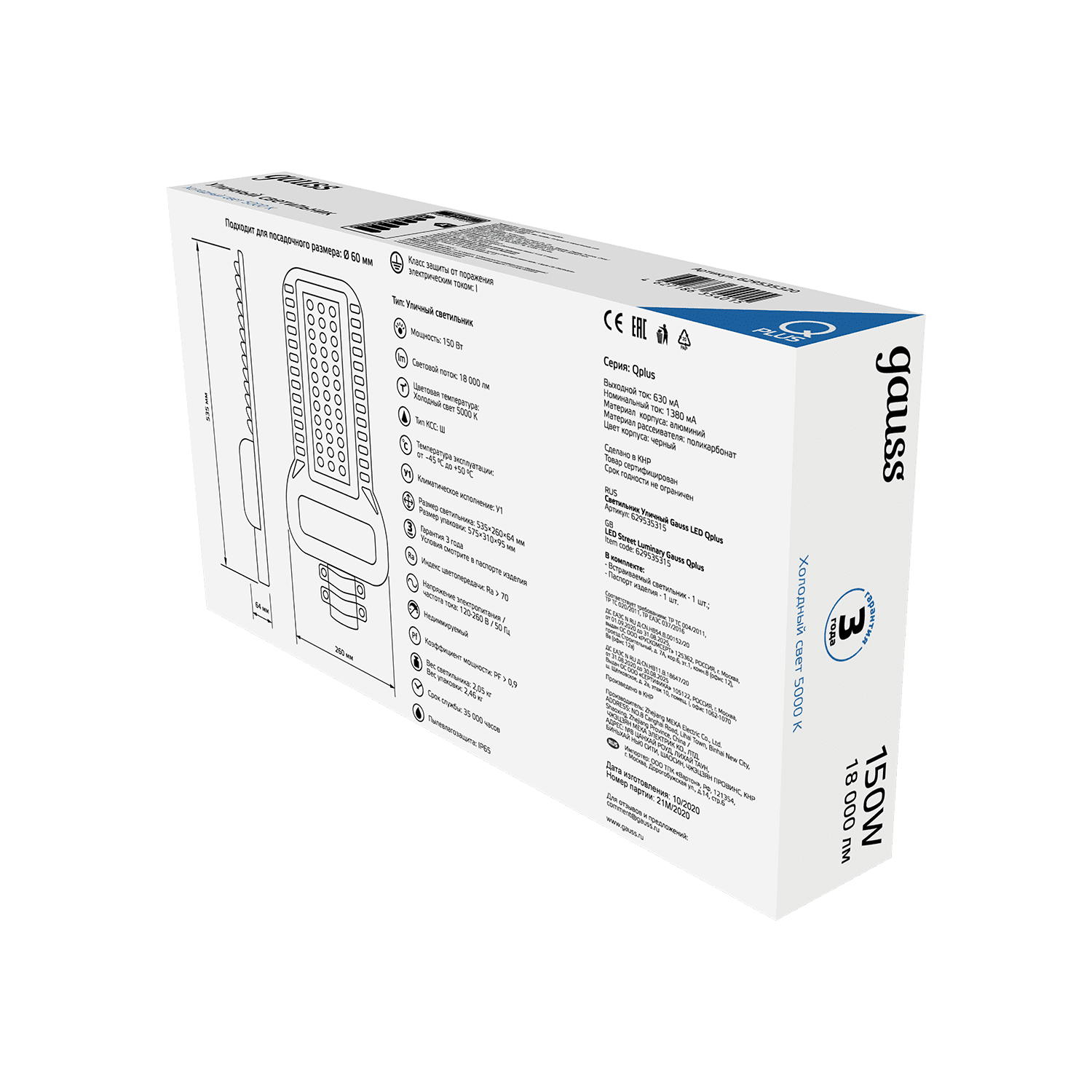 Модель: Светильник уличный Qplus LED 150W 18000lm 5000K 535х260х64 мм
