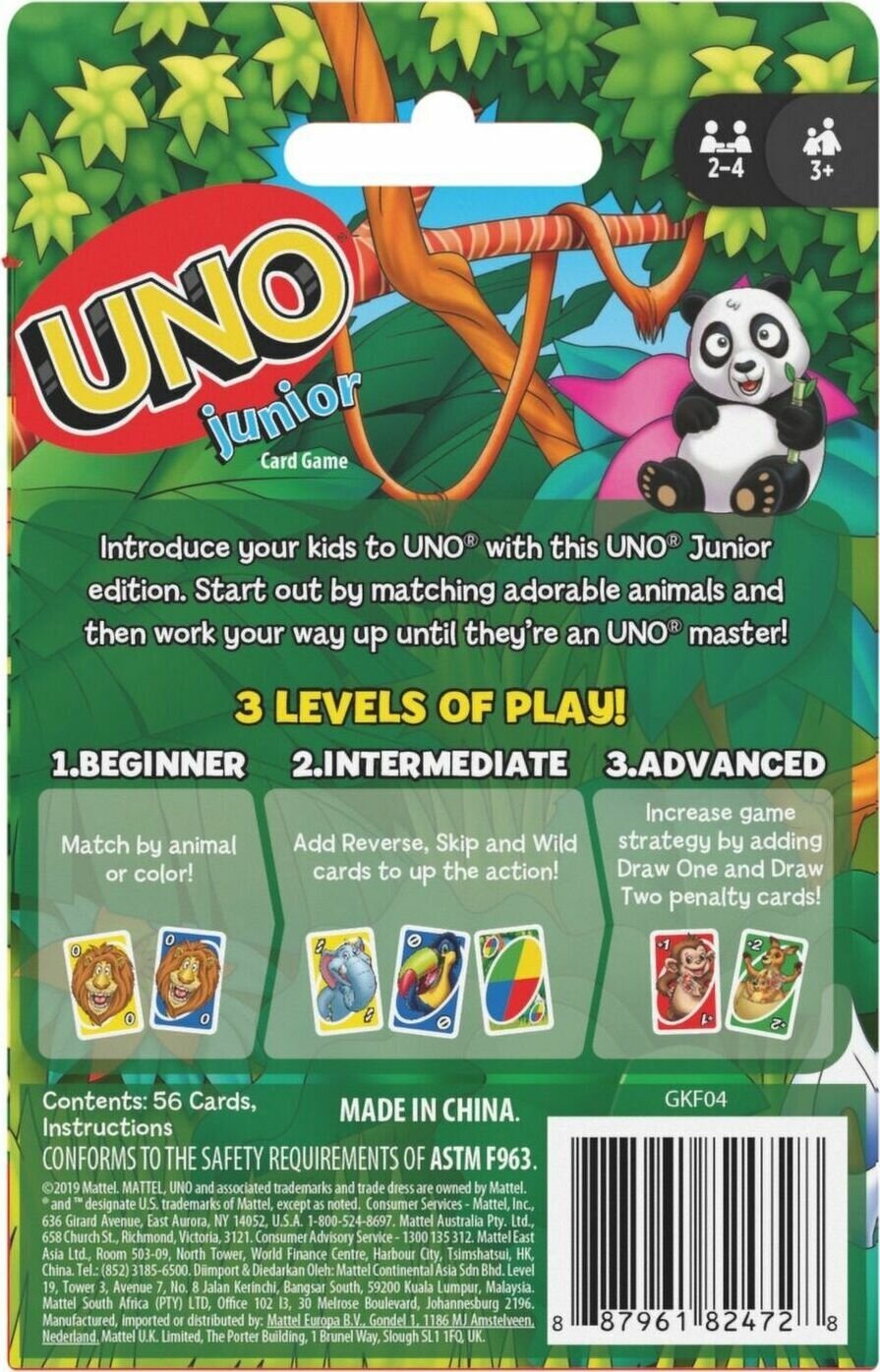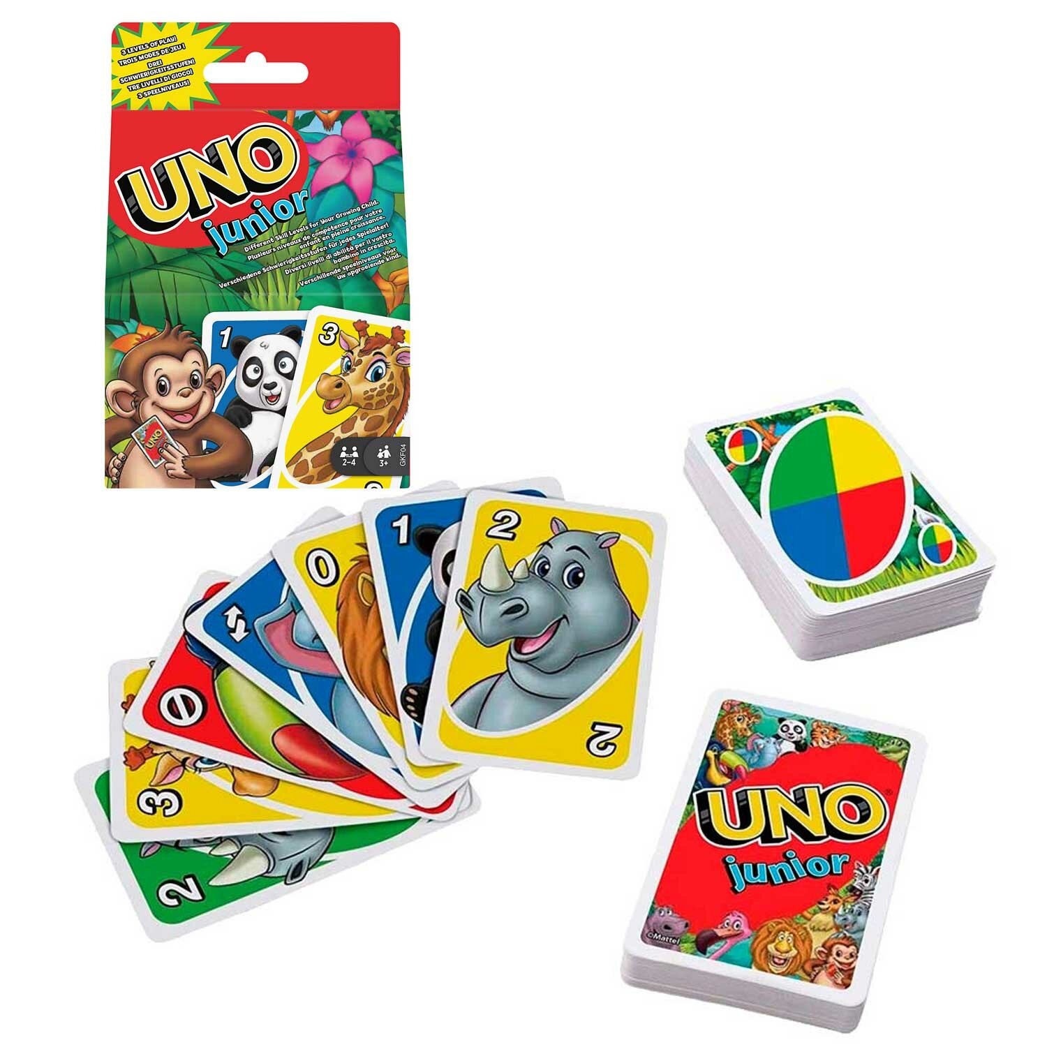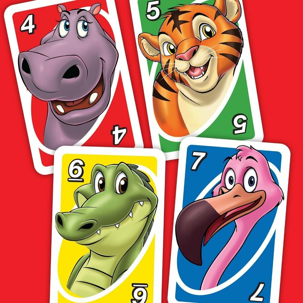 Эта упрощенная версия UNO специально предназначена для малышей. Игра имеет 3 уровня сложности, что позволяет ей "расти" вместе с маленькими игроками. На картах с цифрами от 0 до 8 нарисованы забавные животные из зоопарка, чтобы малышам было удобно ориентироваться и запоминать цифры. Для победы игрокам нужно избавиться от всех своих карт, сопоставляя их с открытой картой наверху колоды по цвету, номеру или животному. Когда у игрока останется одна карта, нужно обязательно крикнуть "Уно!", чтобы стать победите