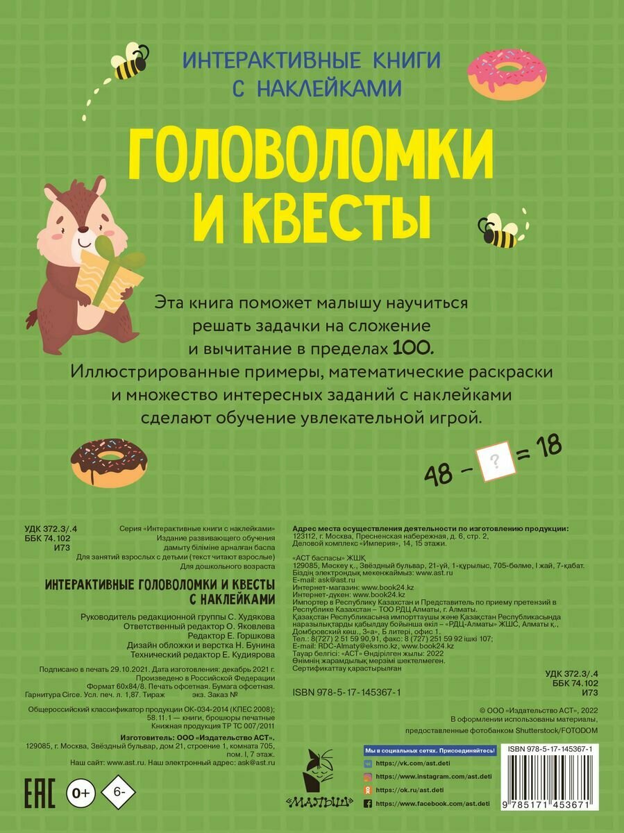 Сервис сравнения цен СкидкаГИД предлагает сравнить цены на товар «Книга: Интерактивные головоломки и квесты с наклейками (Бунина Наталья Владимировна); Малыш, 2021»