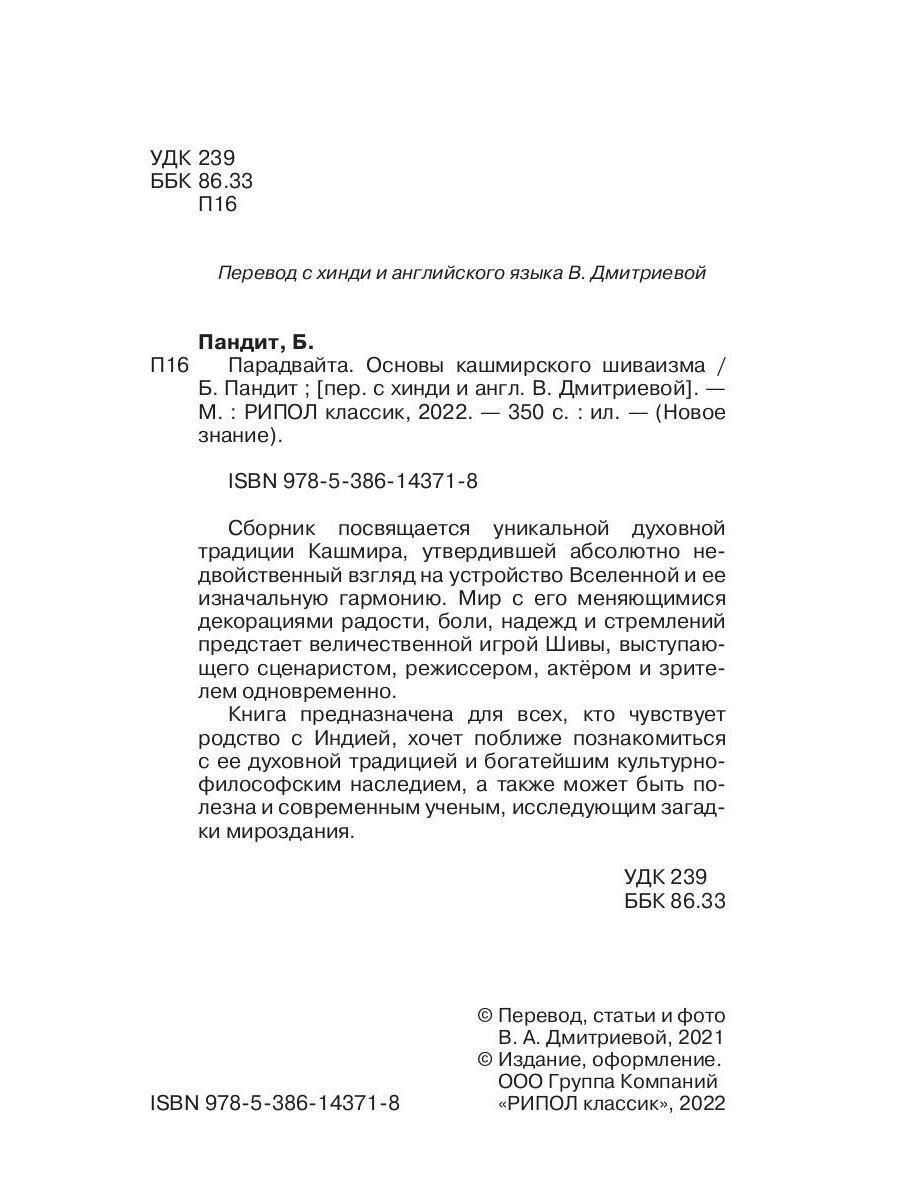 Парадвайта. Основы кашмирского шиваизма (Пандит Баладжиннатх); Рипол-Классик, 2022