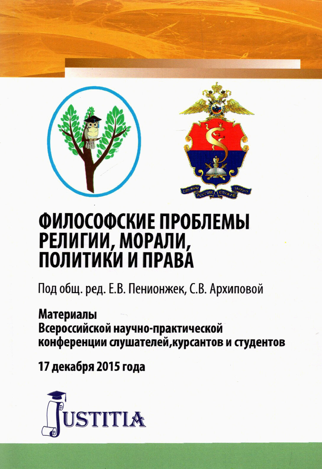 В сборник вошли тексты докладов и выступлений курсантов, слушателей, адъюнктов и студентов, принимавших участие во Всероссийской научно-практической конференции «Философские проблемы религии, морали, политики и права», состоявшейся в Уральском юридическом институте МВД России 17 декабря 2015 года. Тематика докладов, где авторы критически анализируют социальные явления, генерируют новые идеи при решении исследовательских задач, демонстрируют аспекты владения культурой научного исследования в области гуманитарного знания, связана с освещением философско-правовых, профессионально-этических, социально-политических, социокультурных, социально-психологических аспектов правоохранительной деятельности органов внутренних дел. Статьи представлены в авторской редакции. Предназначено для профессорско-преподавательского состава, адъюнктов, курсантов, слушателей образовательных организаций системы МВД России, а также для интересующихся проблемами гуманитарного знания в целом. Обсуждено на заседании кафедры общей психологии, гуманитарных и социальных дисциплин УрЮИ МВД России (протокол № 8 от 27 мая 2016 г.).