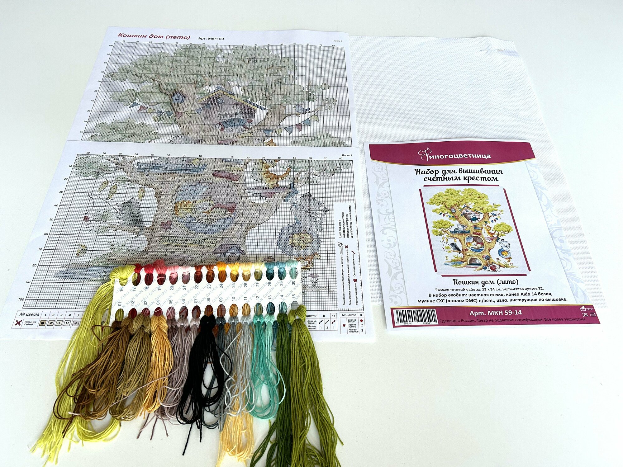 | В набор входит | Канва Aida 14 белая, Мулине СХС (аналог DMC) п/эст. на органайзере, 1 игла, Цветная схема на бумаге, Инструкция по вышивке |