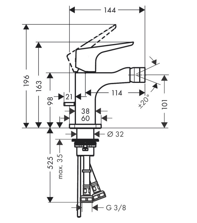 Смеситель для биде Axor Citterio E 36121000 с донным клапаном.