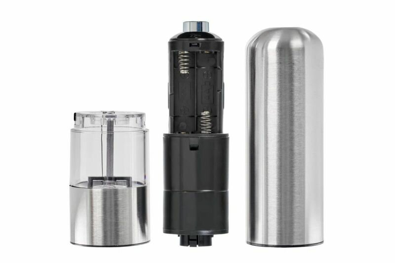 Многие кулинары советуют хранить специи в цельном виде, чтобы они не теряли полноты вкуса и аромата в перемолотом виде. Чтобы следовать советам шеф-поваров и не терять время на измельчение специй в современном быстром графике, используйте электрическую перцемолку. Работающая от батареек, она легко перемелет соль, перец и другие твердые специи — для этого вам нужно будет лишь нажать кнопку. В перцемолке установлен керамический жернов, который обеспечивает более тонкий и однородный помол и работает тише, чем стальной. Этот кухонный атрибут можно использовать как для одного вида специй, так и для душистых смесей. Вы можете выбрать необходимый размер помола, повернув кнопку в нижней части измельчителя. Встроенный в корпус из высококачественной нержавеющей стали светодиодный фонарик позволяет молоть специи даже в темноте.