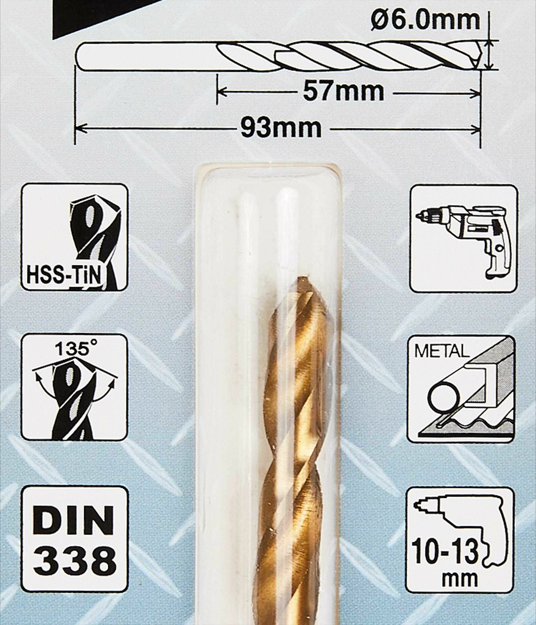 Сверла HSS-TiN имеют угол при вершине 135°, что препятствует соскальзыванию сверла в начале работы.