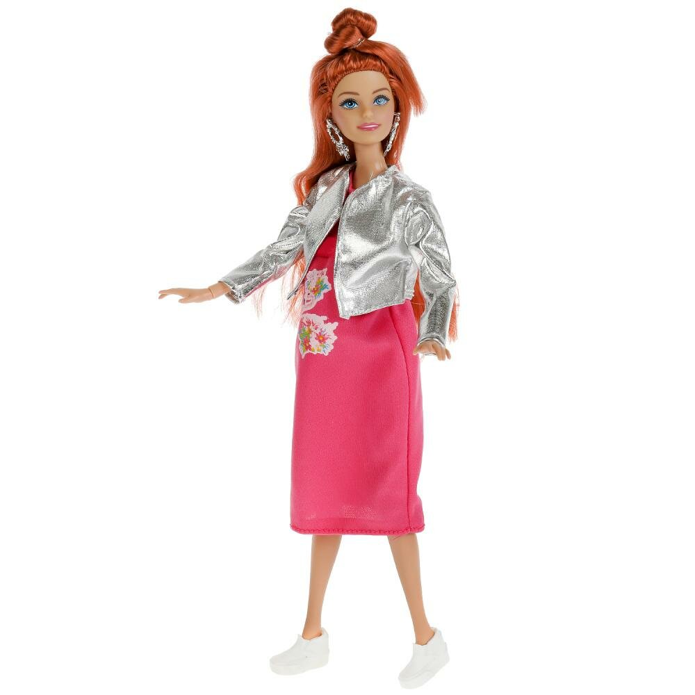 Будущая мама София выбрала для прогулки с собачкой яркое платье с принтом-фламинго и стильную серебристую курточку. Образ куколки дополняют элегантные крупные серьги. Одежду и аксессуары легко снять и надеть. С такой модной куклой девочке будет интересно и весело играть: благодаря тому, что руки и ноги куклы подвижны, им можно придать любое положение. У Софии длинные красивые волосы, которые хозяйка куклы сможет заплетать в разные причёски. Детально проработанный дизайн игрушки вдохновит девочку на новые игровые сюжеты.