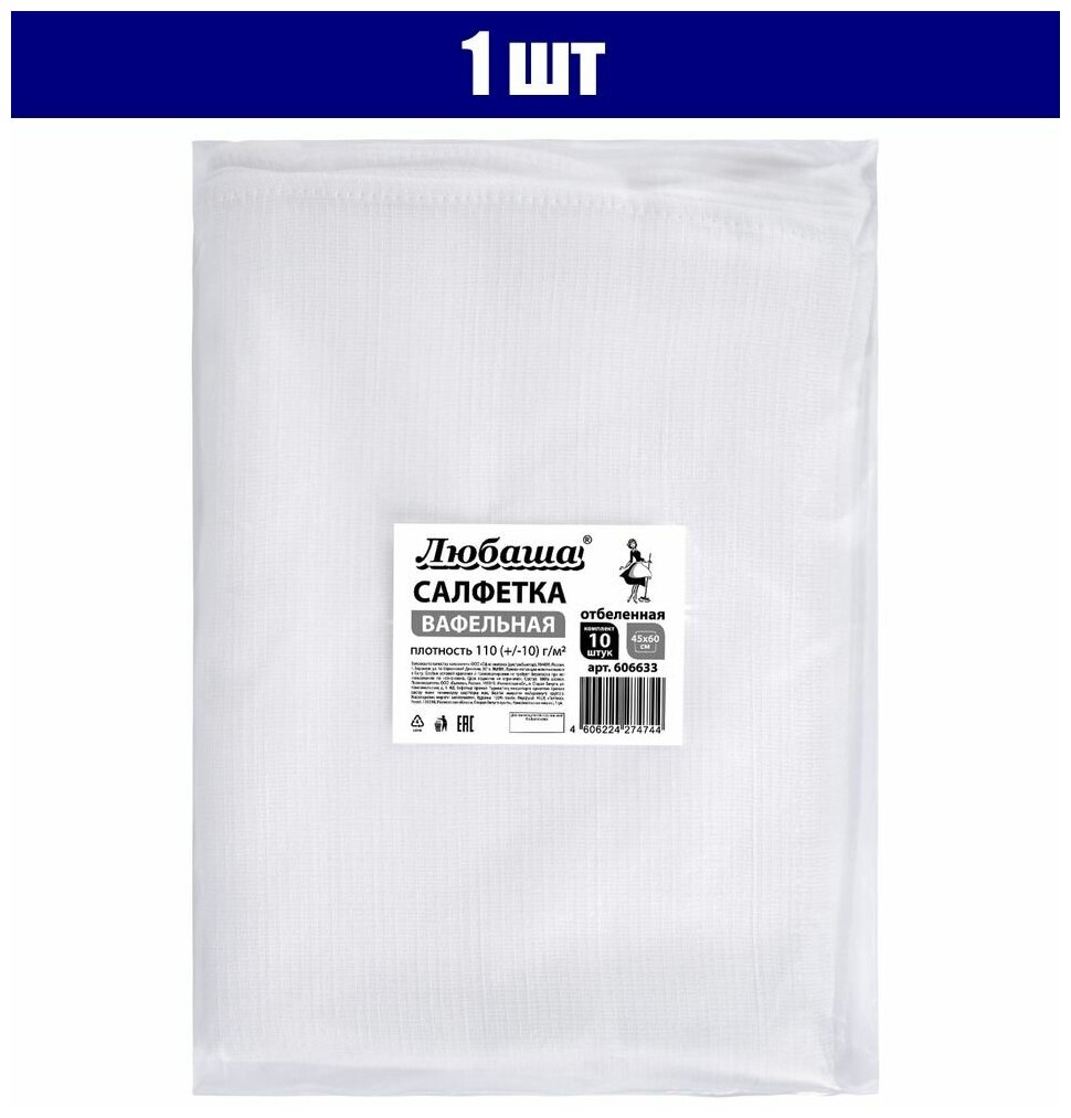Любаша Салфетка вафельная отбеленная 45х60 см 10 шт. 606633