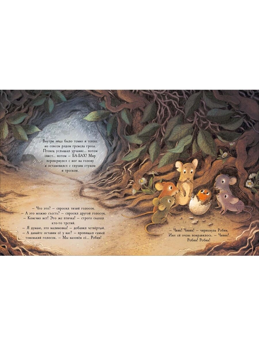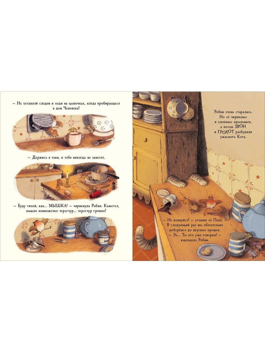 Малиновка Робин так хочет быть похожей на мышек, что даже делает себе из перьев маленькие ушки. Но ничто не может помочь шумной и довольно неуклюжей птичке незаметно таскать со стола вкусные крошки... особенно когда страшный Кот выходит на охоту!