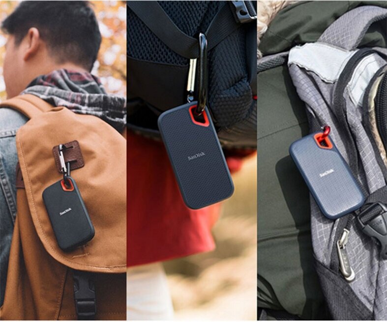 Прочный накопитель, готовый к любым испытаниям Жизнь — это приключение. Портативный твердотельный накопитель SanDisk Extreme повышает эффективность, а значит, подходит для вашего мобильного образа жизни. Практически вдвое быстрее накопителей предыдущего поколения! Мощный и портативный Быстрый высокопроизводительный портативный накопитель большой емкости с интерфейсом NVMe, скоростью чтения 1050 МБ/с и записи 1000 МБ/с, который прекрасно подходит для работы над созданием потрясающих материалов и съемки невероятных фильмов. Испытанная абсолютная надежность. Мы проводим сотни часов тщательного тестирования, чтобы убедиться в том, что ваш диск достоин ваших лучших работ, и чтобы вы знали, что ваши драгоценные файлы находятся в надежных руках. Резервное копирование обеспечивает жизнь без страха Во время сбоев в электросети, вирусных атак и даже стихийных бедствий вы будете спокойны, ведь у вас есть дополнительная копия самого важного, хранящаяся на надежном диске. Достаточно прочный, чтобы брать его с собой. Защита от падений с высоты до трех метров, пыле- и водонепроницаемость со степенью защиты IP65 означают, что этот прочный накопитель может выдерживать серьезные испытания. Его можно брать с собой куда угодно. Вы также можете зафиксировать накопитель на ремне или рюкзаке с помощью удобного крепления для карабина, что обеспечит дополнительную защиту в пути. Защита файлов. Вы можете защитить конфиденциальность содержимого накопителя с помощью пароля и встроенного 256-разрядного аппаратного шифрования AES. Накопитель профессионального уровня. Создан SanDisk — производителем, которому доверяют профессиональные фотографы во всем мире и на устройствах которого хранят лучшие снимки и видеоматериалы. Приложение SanDisk Memory Zone для удобного управления файлами6 С помощью приложения SanDisk Memory Zone, доступного в магазине Google Play, вы можете просматривать все файлы с телефона, получать к ним доступ и выполнять их резервное копирование. Это приложение также может автоматически перемещать файлы с устройства на твердотельный накопитель для освобождения места.