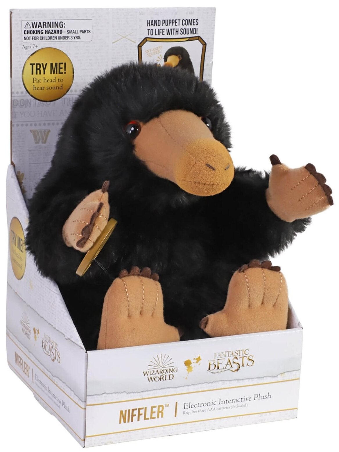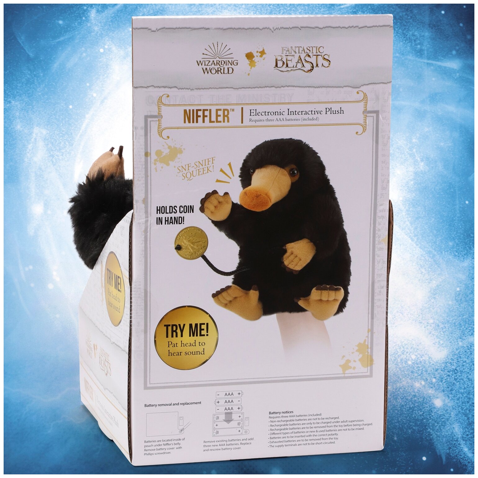 The Noble Collection основана в Вашингтоне в 1991 году и за свою долгую историю работы успела собрать талантливую команду художников, инженеров, скульпторов, которые, стремясь к совершенству, создают удивительную продукцию, зарекомендовавшую себя высоким качеством. Нюхлер - озорное создание, славящееся своей тягой к блестящим объектам. Потрепите этого плюшевого Нюхлера по голове, чтобы услышать как он мило сопит, пищит и булькает. Высота игрушки около 23 см, работает от 3 ААА батареек. Произведено по официальной лицензии Warner Brothers.