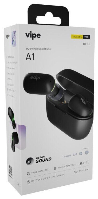 Гарнитура Vipe A1 TWS Bluetooth вкладыши черный [vptwsa1blk] Noname