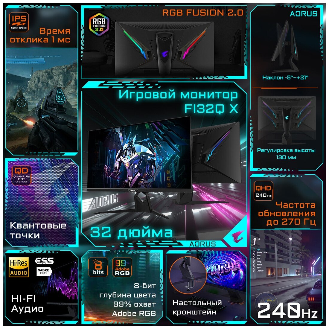 - AORUS FI32Q - Топ IPS игровой монитор на 32 дюйма