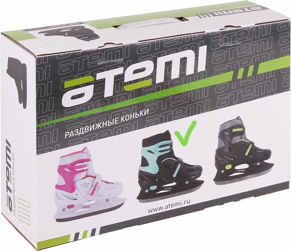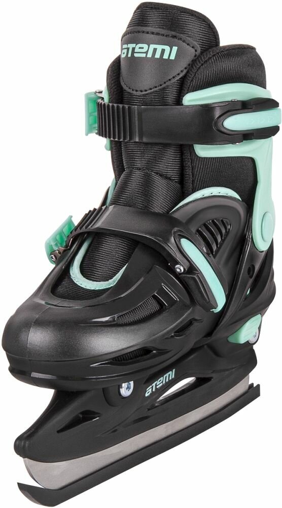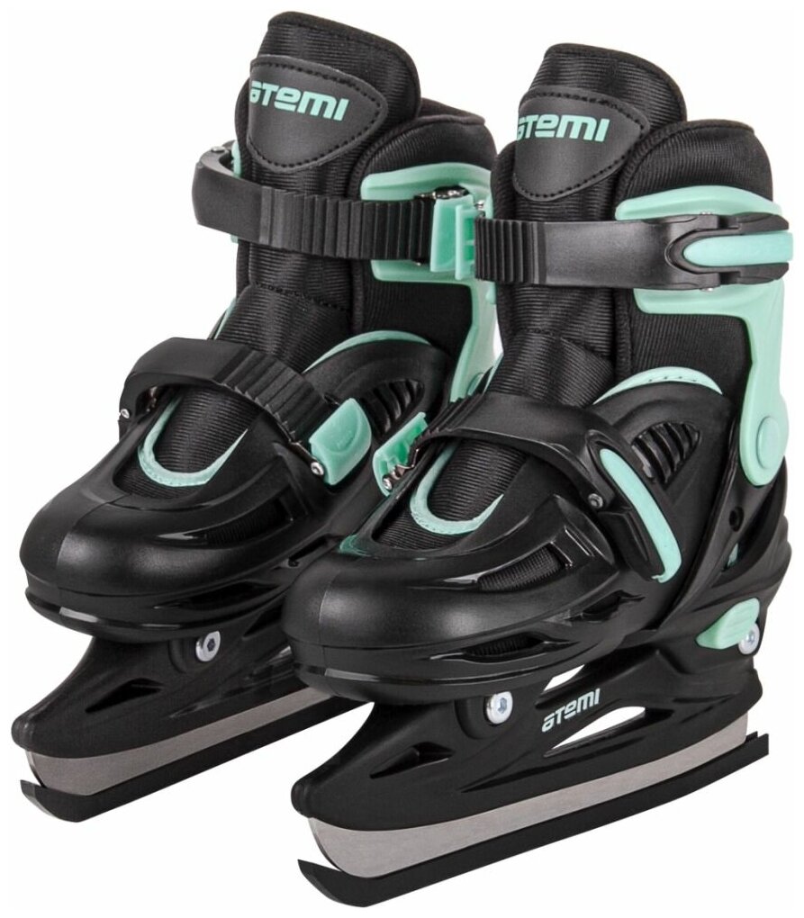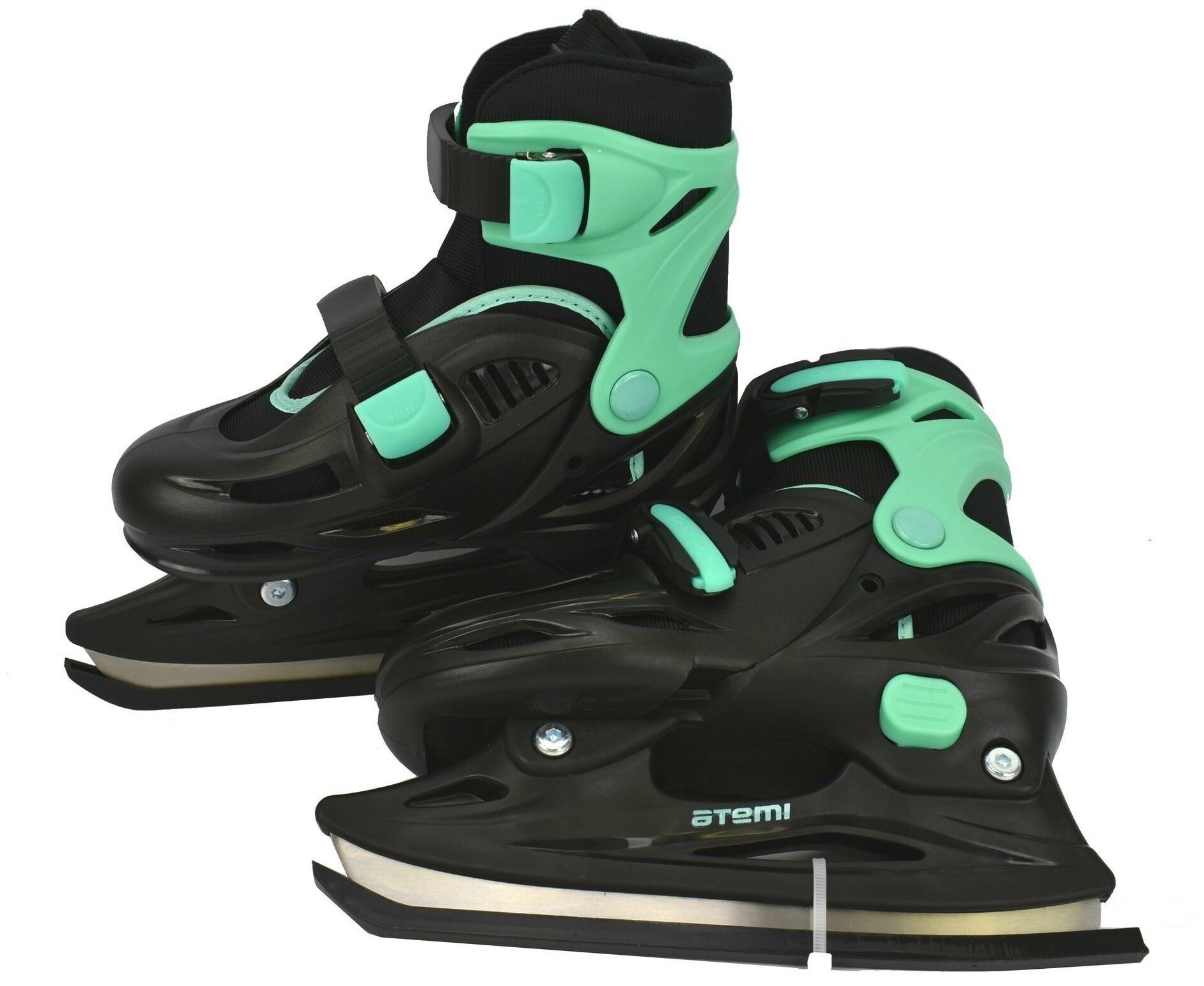 Коньки раздвижные Atemi AKSK03D ботинок из морозоустойчивых материалов (пластик), стелька EVA, Система фиксации (клипса), Лезвие- нержавеющая сталь 3 мм. Коньки не предназначены для коммерческого использования и проката.