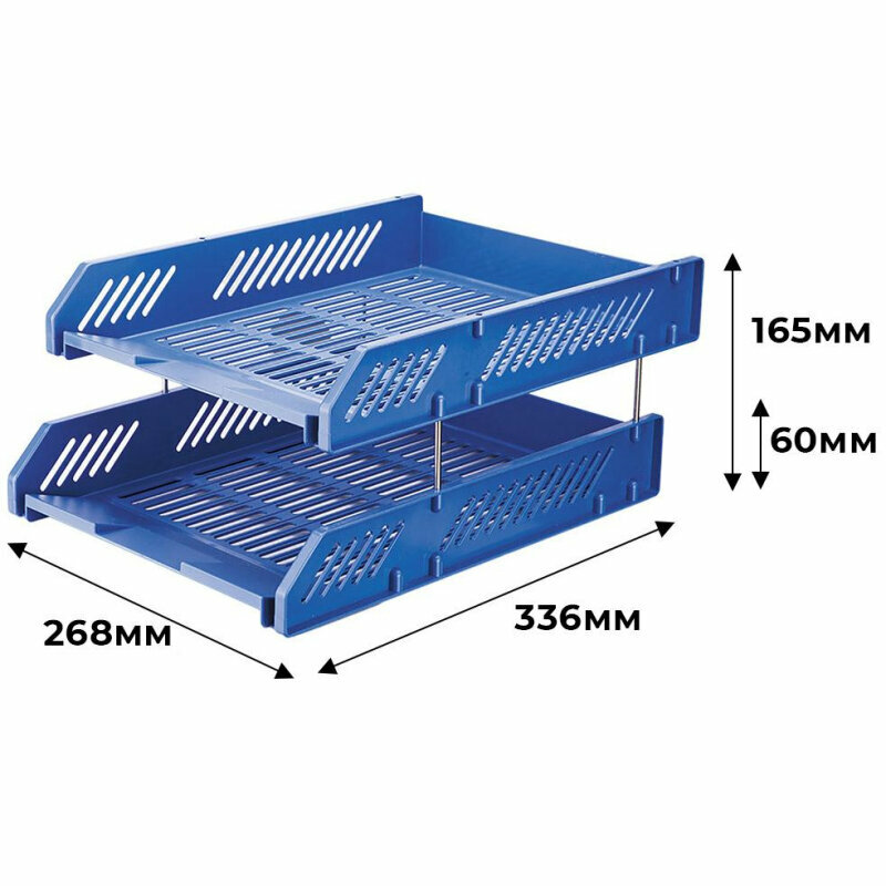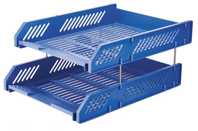 Выполнен из прочного и высококачественного пластика. Соединяются отсеки металлическими стержнями. Два уровня вмещают достаточно большое количество документов - вы эффективно экономите пространство рабочего стола. Конструкцию можно разобрать и убрать на хранение - она не займет много места.