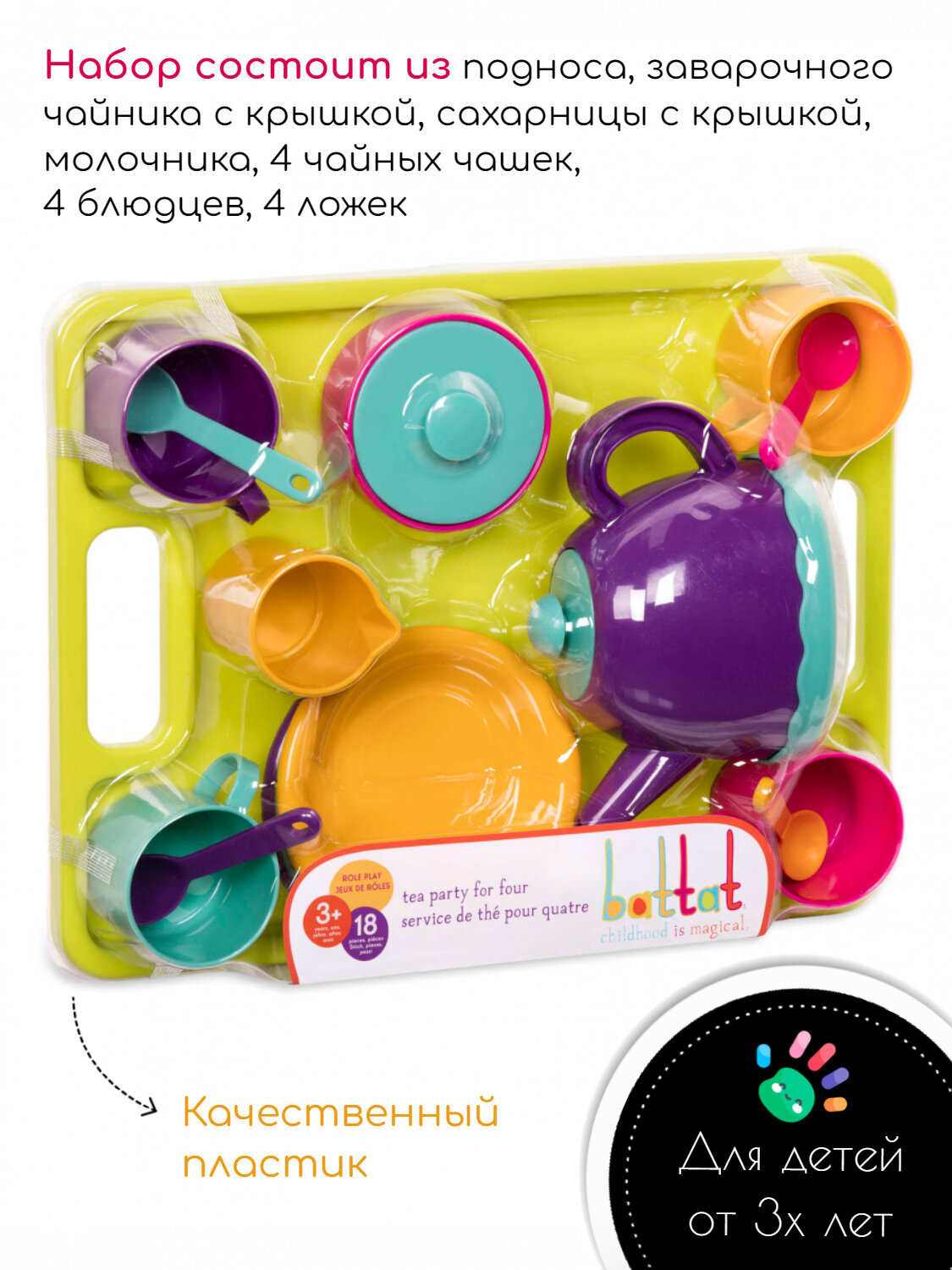 На сегодняшний день товар «Battat Набор игрушечной посуды для чаепития на 4 персоны» можно купить с кешбеком в 1 магазине: Яндекс.Маркет