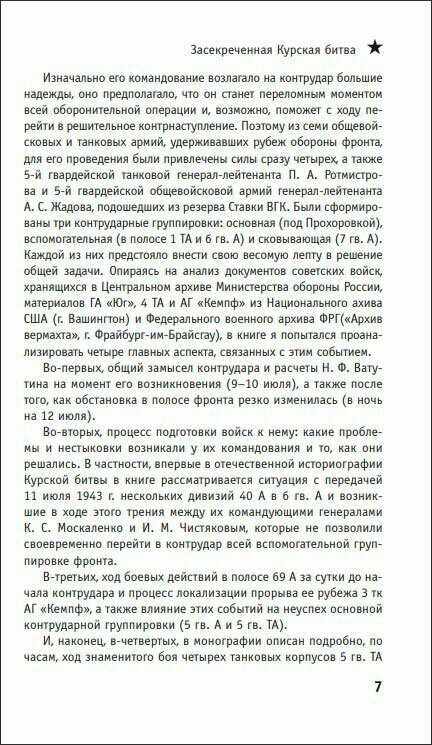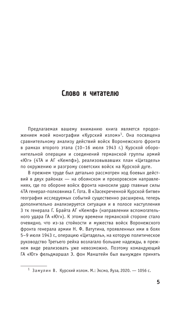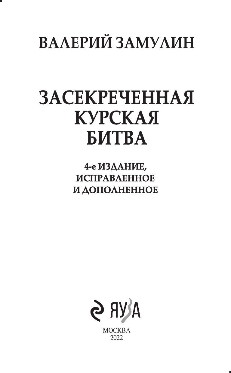 "Засекреченная Курская битва" продолжает цикл работ автора по теме. Настоящая четвертое издание дополнено большим архивным материалом: зарубежные архивы где работал В.Замулин и документы из домашних архивов читателей. Многие из документов впервые введены в научный оборот.