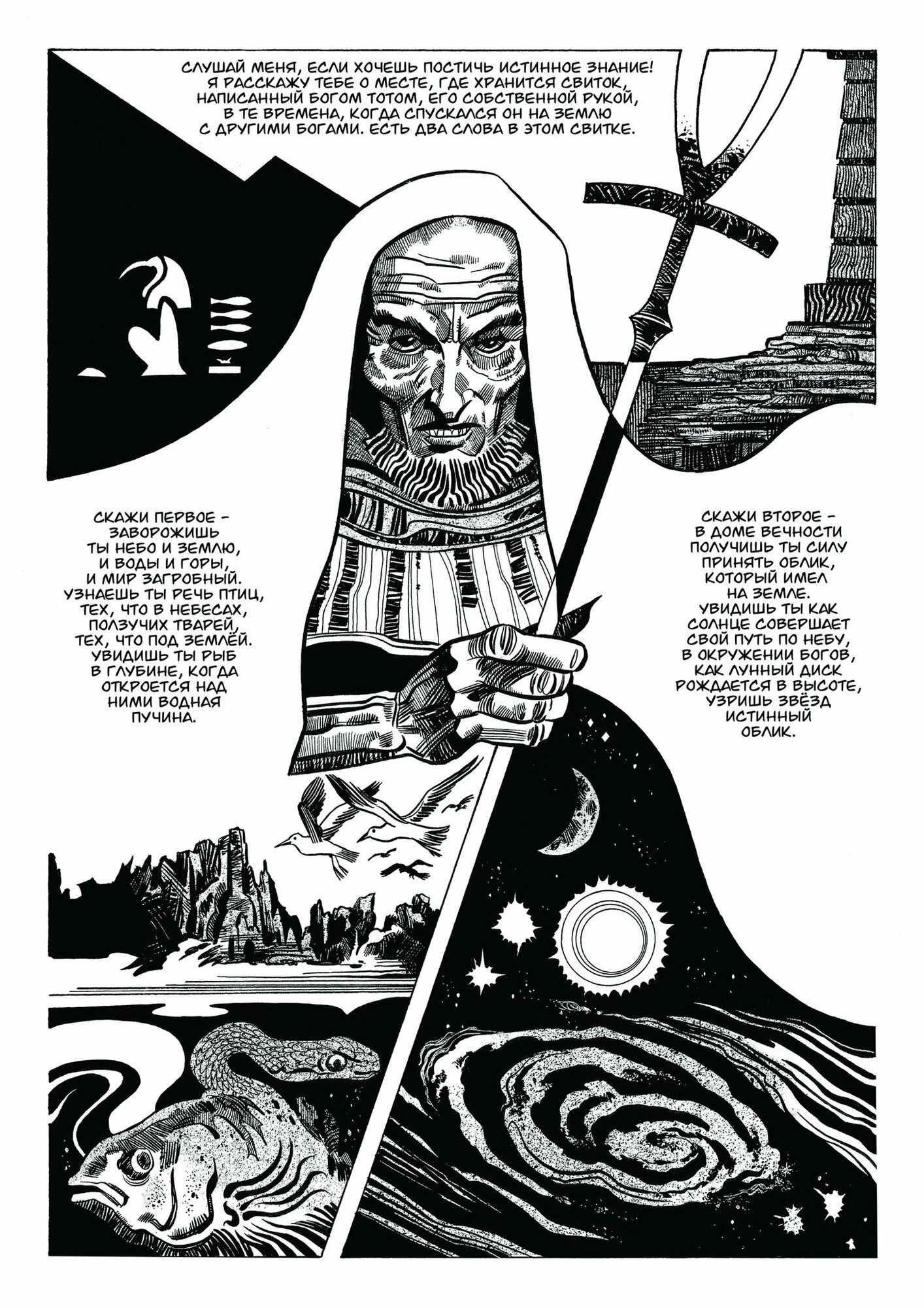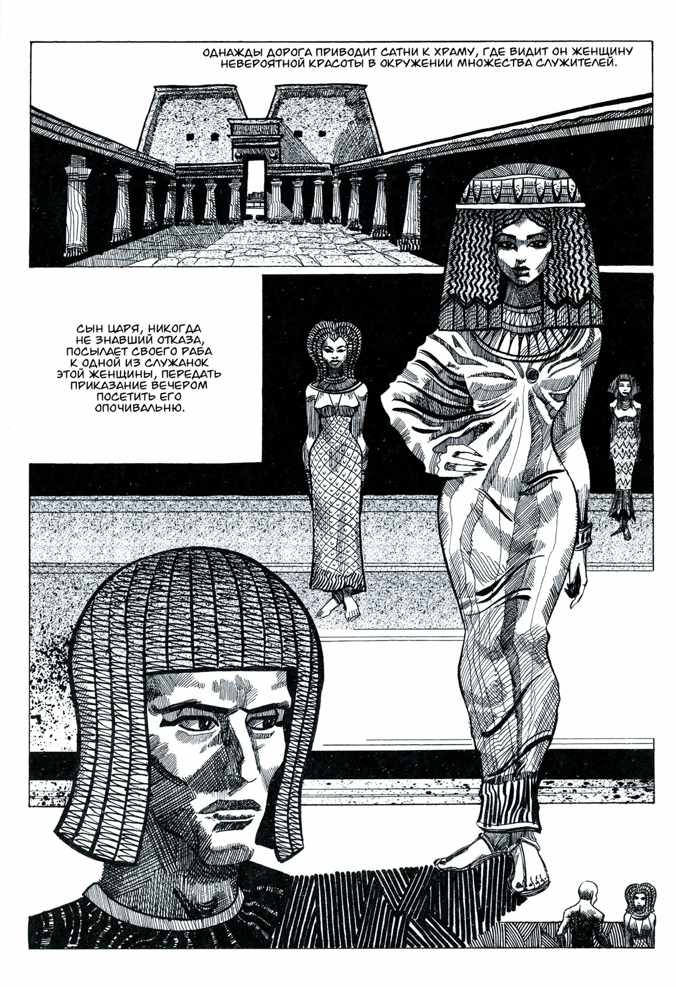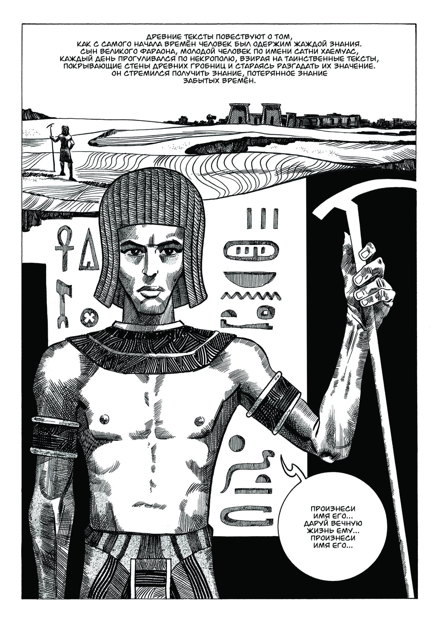 Данный комикс представляет из себя переработанный отрывок из древнеегипетской сказки «Сатни-Хемуас и мумии», входящей в цикл сказаний о Сатни-Хемуасе. Сказка переведена и издавалась по крайней мере 2 раза в составе сборников под редакцией Кацнельсона.