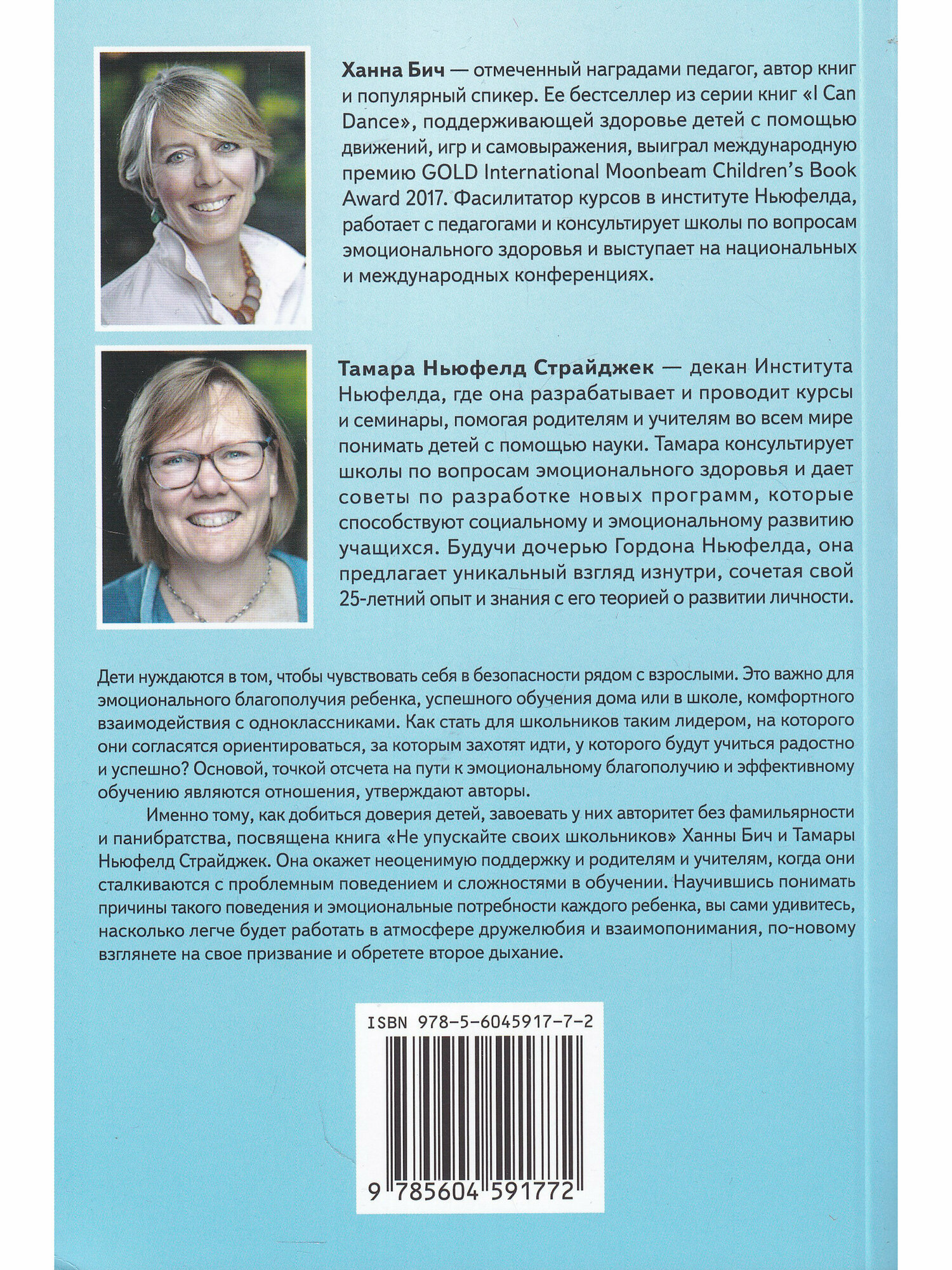 Именно тому, как добиться доверия детей, завоевать у них авторитет без фамильярности и панибратства, посвящена книга "Не упускайте своих школьников" Ханны Бич и Тамары Ньюфелд Страйджек. Она окажет неоценимую поддержку и родителям и учителям, когда они сталкиваются с проблемным поведением и сложностями в обучении. Научившись понимать причины такого поведения и эмоциональные потребности каждого ребенка, вы сами удивитесь, насколько легче будет работать в атмосфере дружелюбия и взаимопонимания, по-новому взглянете на свое призвание и обретете второе дыхание.