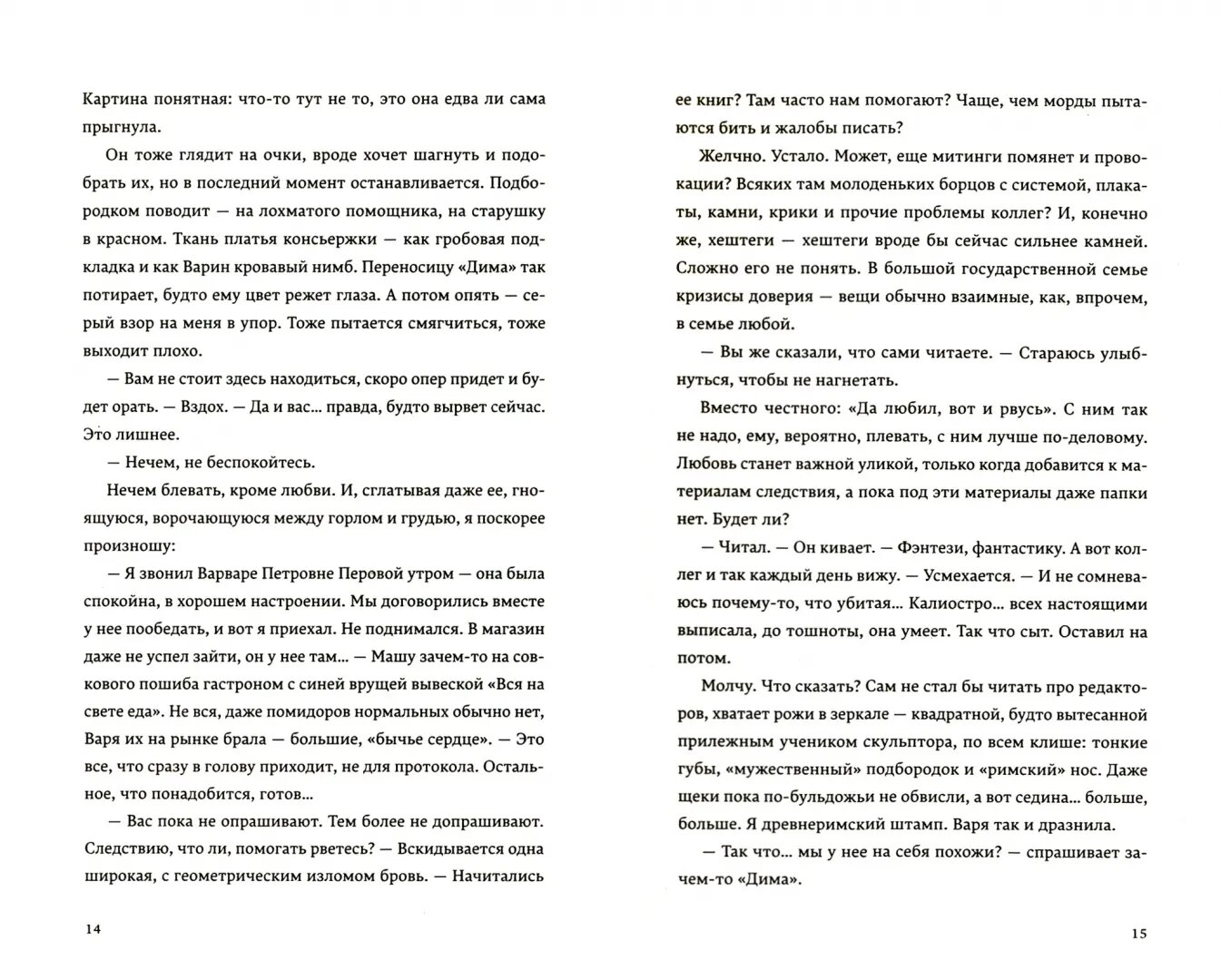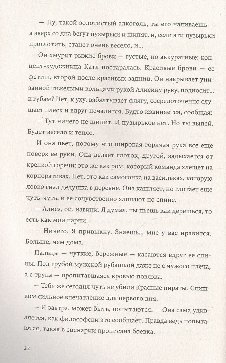 А ещё периодически хотелось остановиться и продумать какую-то определённую мысль, представить себя на месте героев и поспорить с ними. Я, как читатель, часто не соглашалась с мыслями, которые высказывали редакторы и писатели. Мы с ними как бы по разные стороны книги. Но услышать такую точку зрения было интересно и важно.