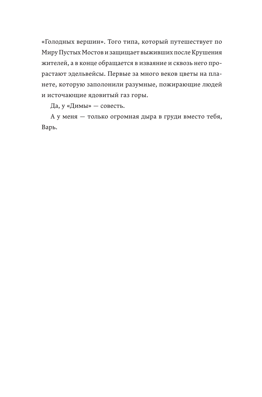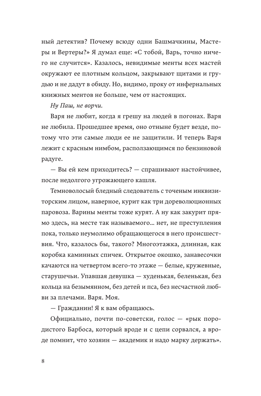 Неожиданная гибель писательницы Варвары Перовой оставляет глубокую рану в душе любивших ее людей — редактора Павла, коллеги по перу Джуда и читателя, следователя Дмитрия. Каждый из них по-своему справляется с потерей: один пытается собрать воедино дорогие воспоминания, второй бросает вызов окутывающим Варины книги загадкам, а третий ищет ее убийцу. Миры этих людей почти не пересекаются, однако случившееся заставляет каждого переосмыслить собственную жизнь.
