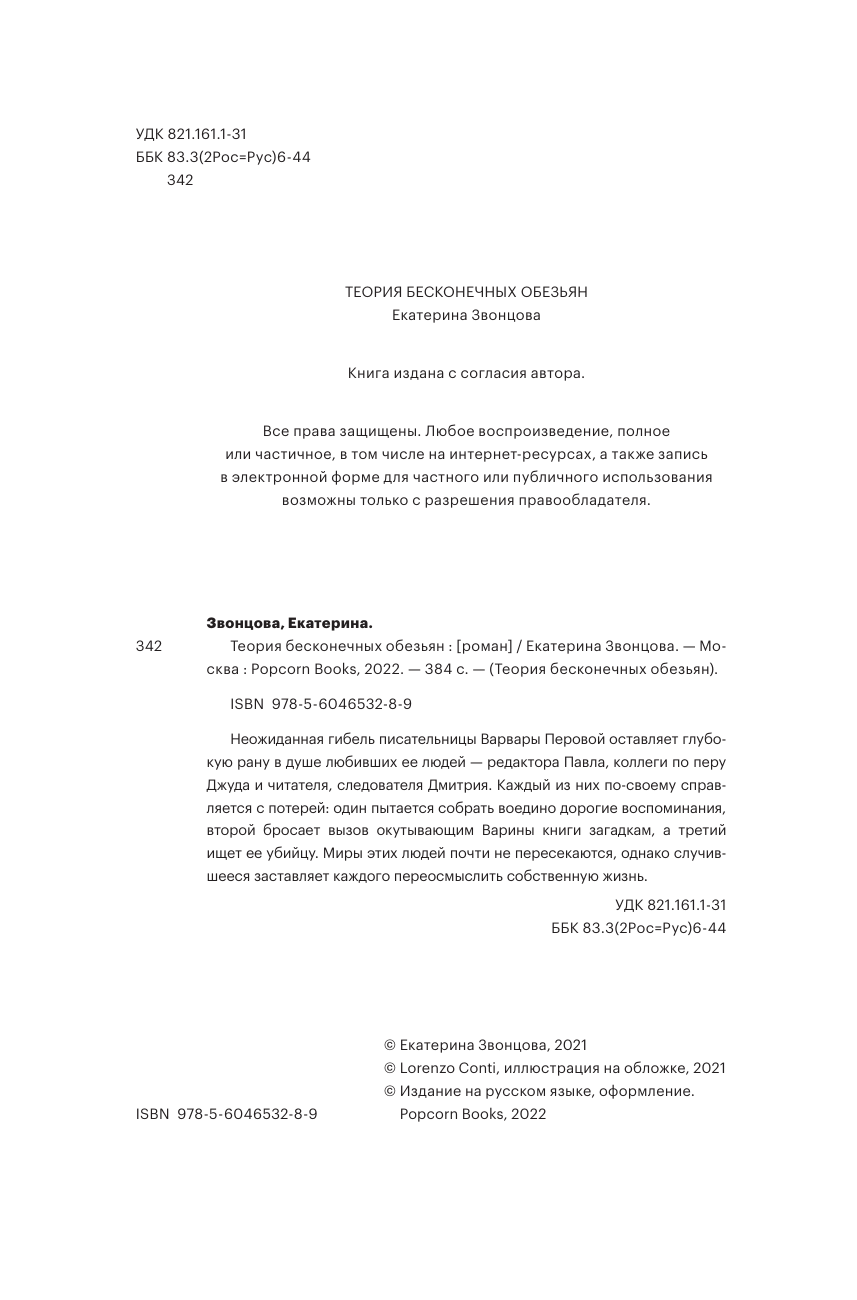 Теория бесконечных обезьян (Екатерина Звонцова); ИНДИВИДУУМ ПРИНТ ООО, 2024
