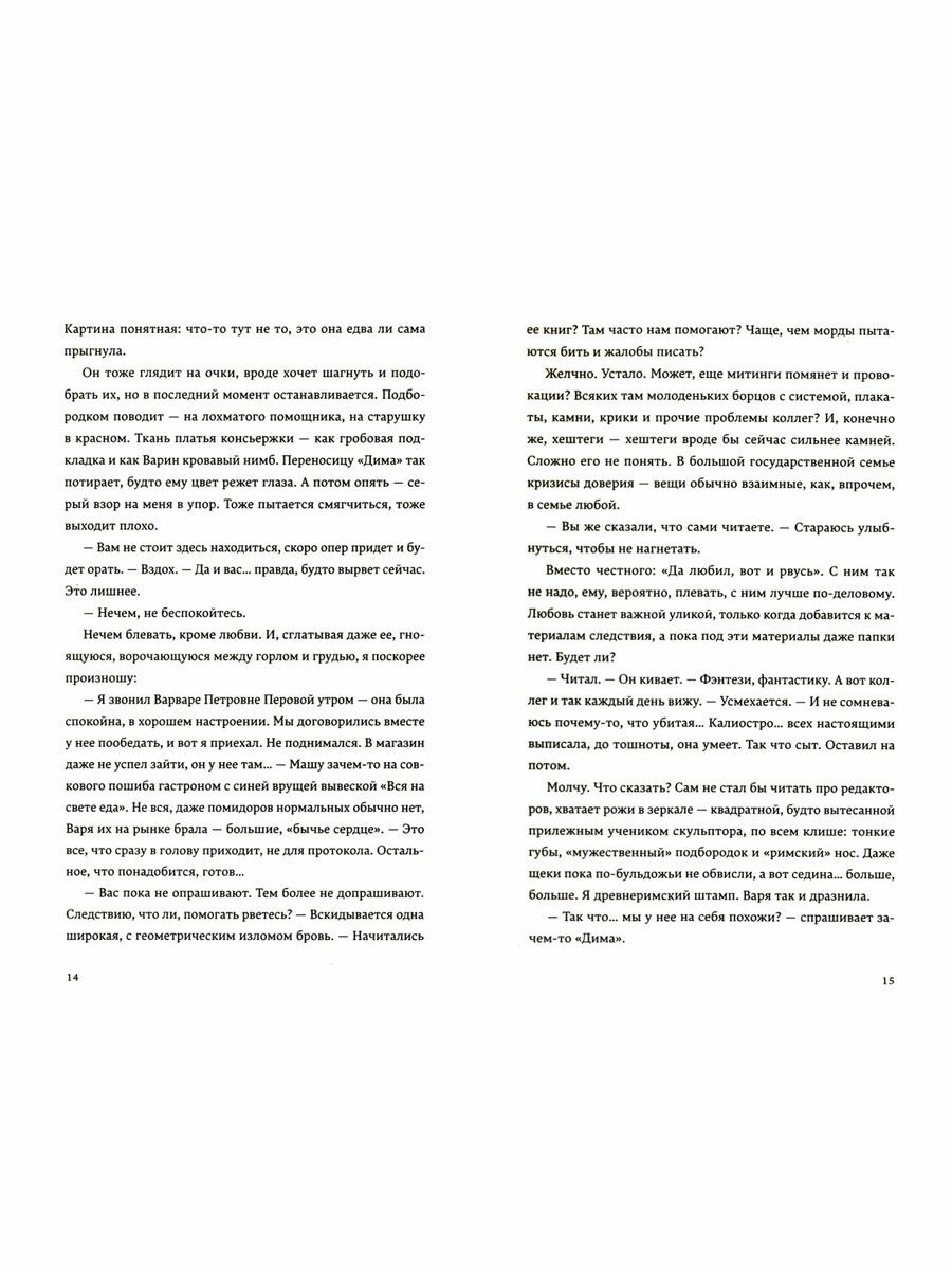 Сначала было сложно продраться через сюжет. Казалось, что это всё сплошная заумь, с которой ещё нужно разобраться, догадайся, мол, сама. Но примерно через 50 страниц я погрузилась в текст, и история меня захватила. Если вы ищите просто детектив или что-то лёгкое на вечер, то стоит пройти мимо. Но если вы готовы воспринять эту книгу полностью, оценить все её аспекты в целом, добро пожаловать! Все детали книги работают только вместе, создавая нечто особенное.
