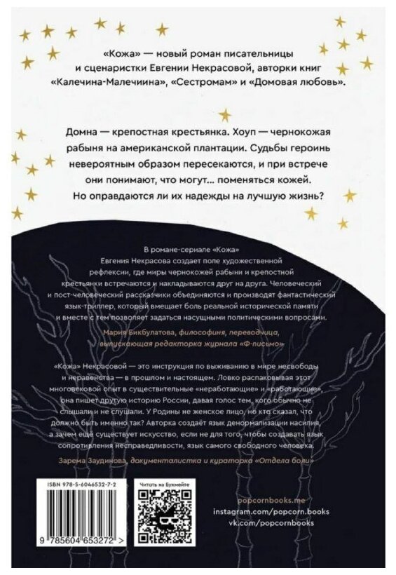 На сегодняшний день товар «Книга: Кожа (Евгения Игоревна Некрасова); ИНДИВИДУУМ ПРИНТ ООО, 2023» можно купить с кешбеком в 5 магазинах: book24, ЛитРес, Буквоед, Читай-город, Яндекс.Маркет