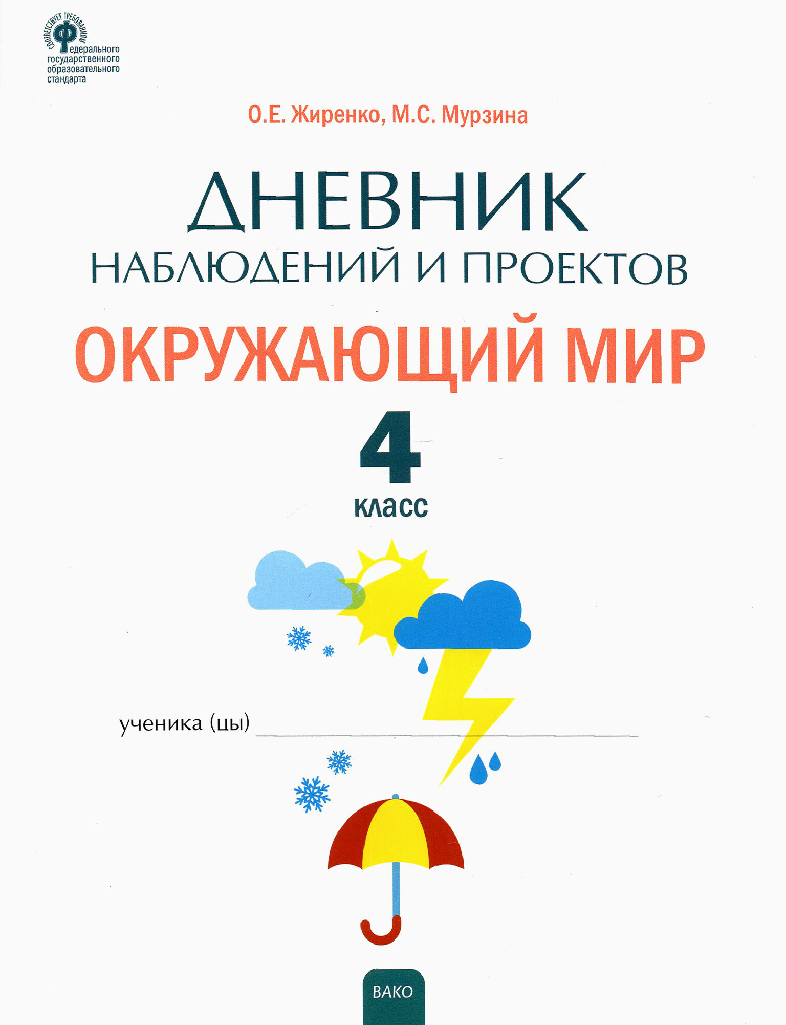 Дневник наблюдений и проектов Окружающий мир 4 класс Рабочая тетрадь (Жиренко Ольга Егоровна, Мурзина Мария Сергеевна); Вако, 2022