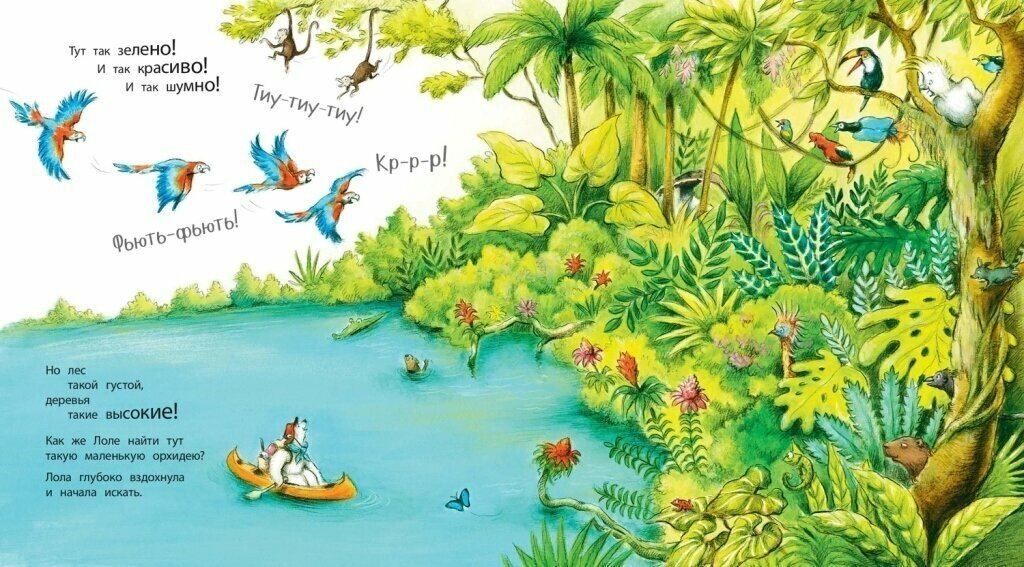 Обожаю детские книги, в которых интересная сказка, история ненавязчиво сопровождается познавательной информацией для ребенка. Поэтому уже давно заприметила «Живую серию» - чудесные книги о животных, которые и развлекают, и несут определенный воспитательный смысл и знания. И эта книга просто замечательная! И здесь здорово все - и сама история, и пример храбрости и веры в себя маленькой медведицы Лолы, плюс ребенок знакомится с Арктикой, где живут медведица и ее дедушка, и особенностями природы и животного мира тропиков. Оказывается, поющий цветок - не выдумка, он действительно есть, и это стало для меня открытием дня. Внучке очень понравились и рисунки - любим этого автора и художника еще с серии «Один день приключений». Персонажи у нее особенно добрые и милые, а краски природы яркие, но не навязчивые.