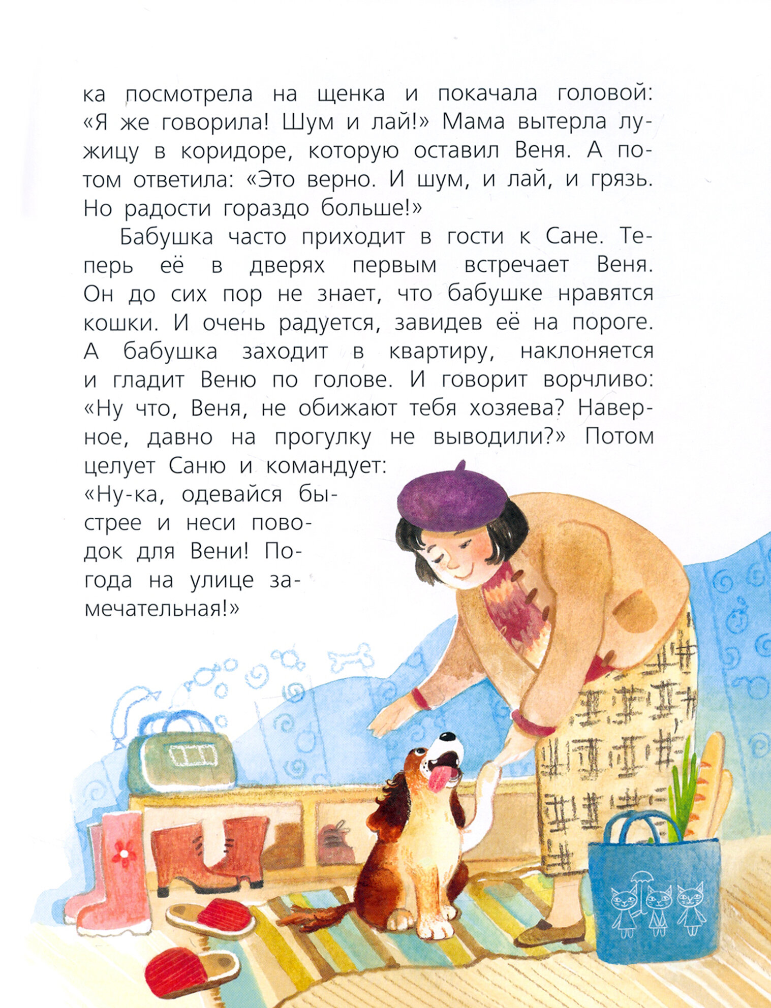 В обычной городской квартире живут Саня и Веня. У Сани на голове рыжий хохолок. И у Вени тоже. Сане пять, и Вене пять. Только Сане пять лет, а Вене пять месяцев. Саня уже большой. А Веня ещё маленький. Веня – щенок. А Саня – мальчик. Об их дружбе, приключениях и открытиях расскажут забавные и трогательные истории Елены Ярышевской и озорные рисунки Екатерины Плаксиной.
