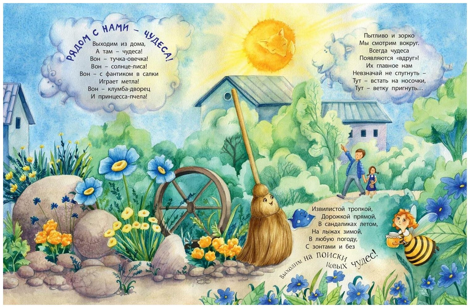 Дети умеют видеть волшебство в обычных вещах, удивляться, восхищаться и радоваться тому, что взрослые оставляют незамеченным. Если довериться маленьким фантазёрам, взглянуть на мир их глазами, то совсем рядом начнут происходить настоящие чудеса: озорная дорожка обернётся гармошкой, осенние листья покажут настоящий балет, автомобили заговорят со светофором, а обыкновенный репейник, простой скворечник и привычные ночные фонари поведают нам свои тайны. Отправляемся на поиски чудес! Нам помогут волшебные стихи Натальи Карповой и очаровательные рисунки Натальи Мошковой.