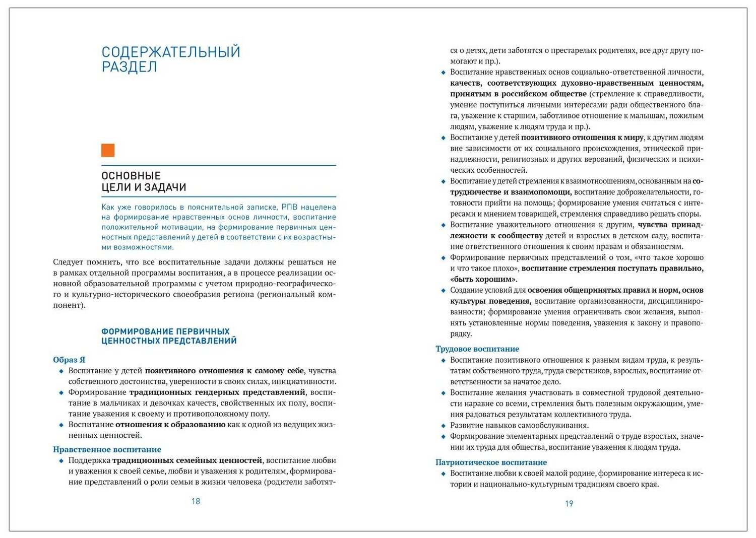В рабочей программе воспитания обозначены основные цели и задачи воспитания, отражающие интересы человека, семьи, общества и государства. Даны нравственные ориентиры и ожидаемые образовательные результаты воспитательной работы для каждой возрастной группы.
