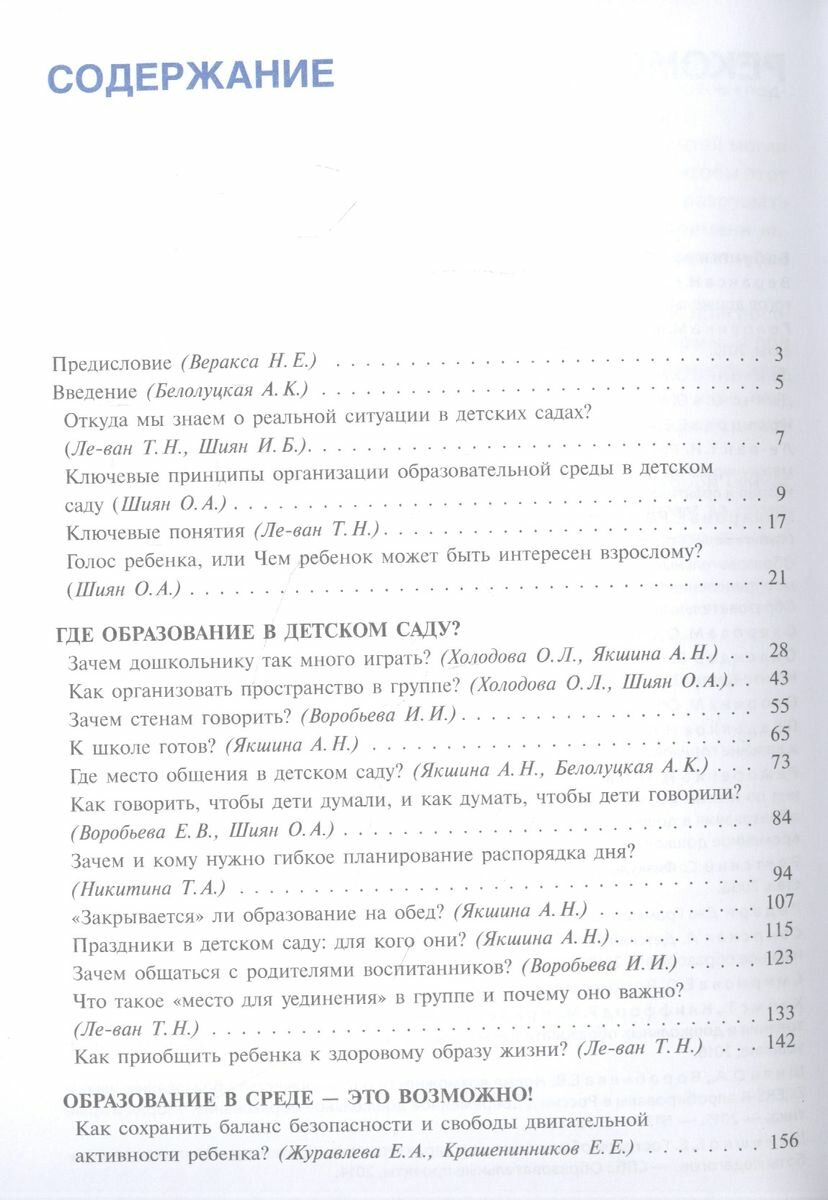 Книга помогает найти ответы на многие серьезные и насущные вопросы дошкольного образования: что такое голос ребенка и как его услышать; как организовать пространство в детском саду, чтобы дети не мешали друг другу, а, наоборот, продуктивно взаимо действовали; как построить диалог с ребенком таким образом, чтобы он стимулировал детское мышление, а не превращался в команды педагогов, которые делают детей объектами педагогического воздействия, и т. п.