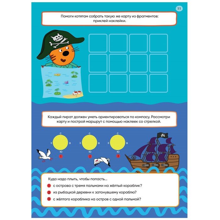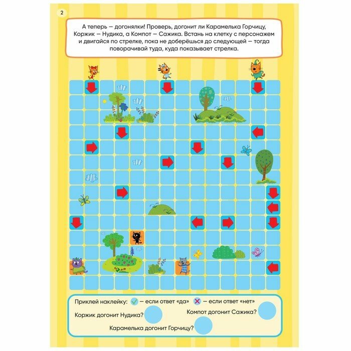 все их нужно будет решить с помощью наклеек. Пусть это не так просто, но очень увлекательно! А приклеив все 250 наклеек, можно проверить себя, в конце спрятаны ответы на все головоломки. Логика, внимание, память — всестороннее развитие мышления вместе с Коржиком, Карамелькой и Компотом. Миу-миу-миу!