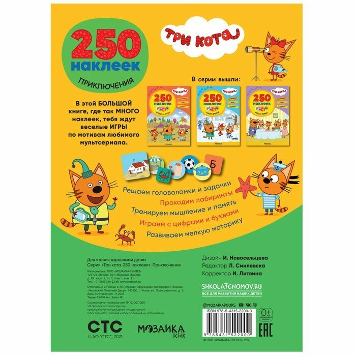 Три кота. 250 наклеек. Приключения (Людмила П. Смилевска); МОЗАИКА kids, 2021
