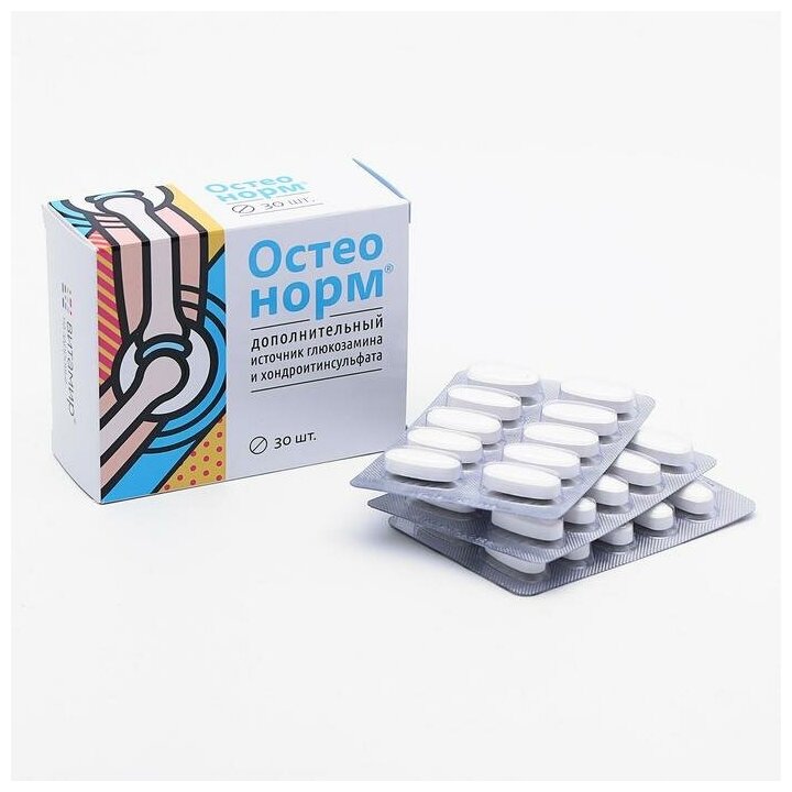 Остеонорм МСМ максимум, здоровые суставы, 30 таблеток. В комбинированный состав «Остеонорма» входит глюкозамин, хондроитина сульфат, гиалуроновая кислота и метилсульфонилметан (МСМ), их сочетание обеспечивает более высокую эффективность, чем однокомпонентные средства.Глюкозамин и хондроитин являются компонентами хрящевой ткани суставов. Они являются наиболее изученными хондропротекторами с доказанной эффективностью и высоким уровнем безопасности. Сочетание этих веществ может способствовать облегчению неприятных ощущений в спине и суставах. Они способствуют восстановлению структуры повреждённой хрящевой ткани, её регенерации, стимулируют обменные процессы, таким образом улучшается подвижность суставов. Дополнительный приём этих веществ способствует предотвращению разрушения хряща из-за различных патологических процессов.Гиалуроновая кислота выступает как компонент синовиальной смазывающей жидкости сустава, её дополнительный прием способствует усилению продукции собственной гиалуроновой кислоты. Это способствует увеличению подвижности сустава и облегчению движения.Метилсульфонилметан (МСМ) - это сероорганическое соединение, которое может способствовать снижению проявлений и облегчению симптомов заболеваний суставного аппарата.Благодаря комплексному действию этих компонентов возможно улучшение подвижности сустава и снижение скованности движений, так как уменьшается трение и предотвращается разрушение суставов, таким образом комплекс этих соединений способствует питанию и восстановлению структуры хрящевой ткани.Способ применения и дозы: взрослым и детям старше 14 лет по 1 таблетке 2 раза в день. Продолжительность приема 1 – 2 месяца. При необходимости прием можно повторить.(5472293)