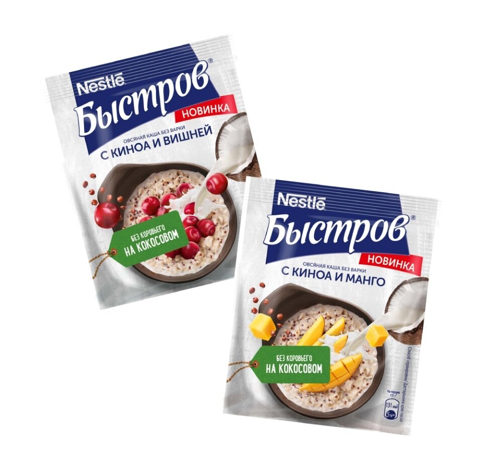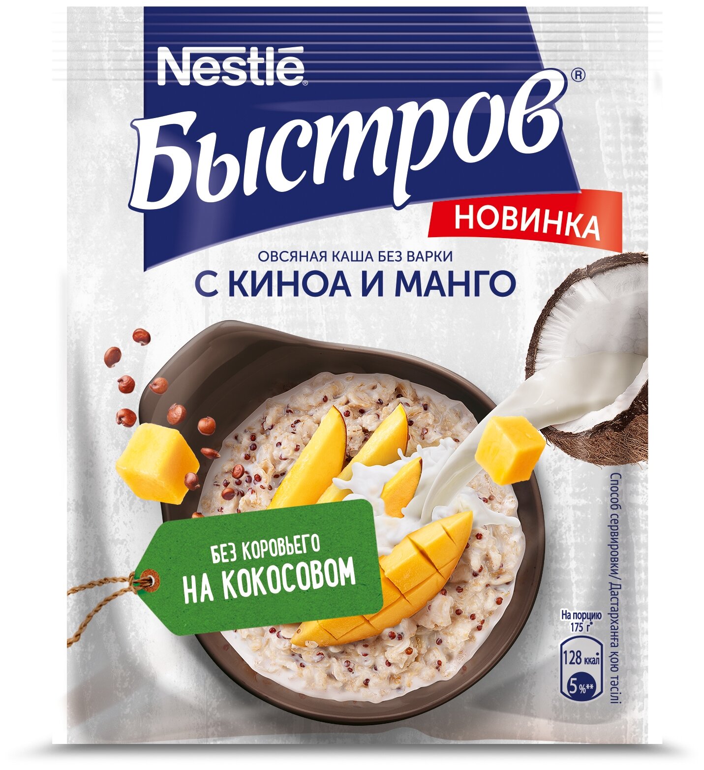 Каша Быстров Овсяная без варки Ассорти с киноа Манго и Вишня 175г Нестле Россия